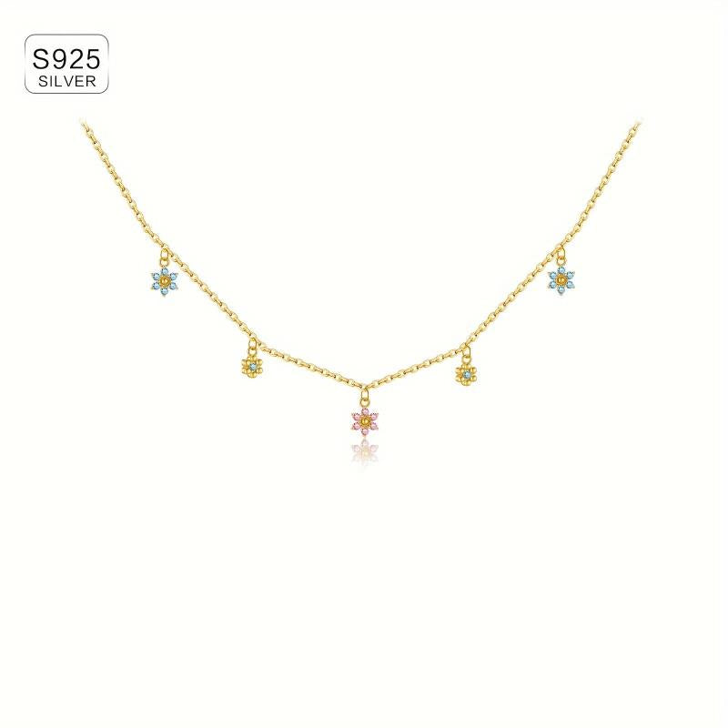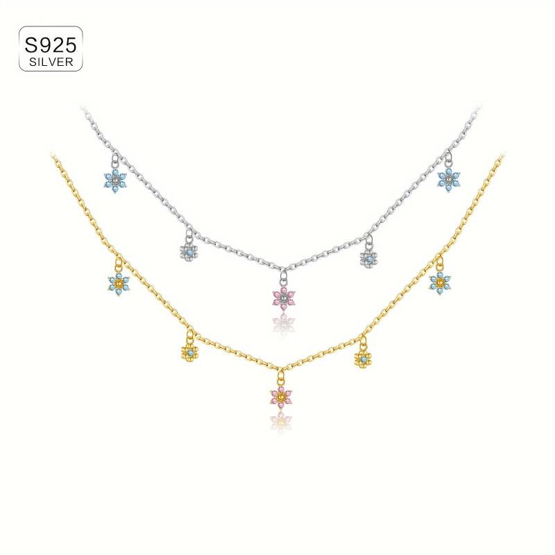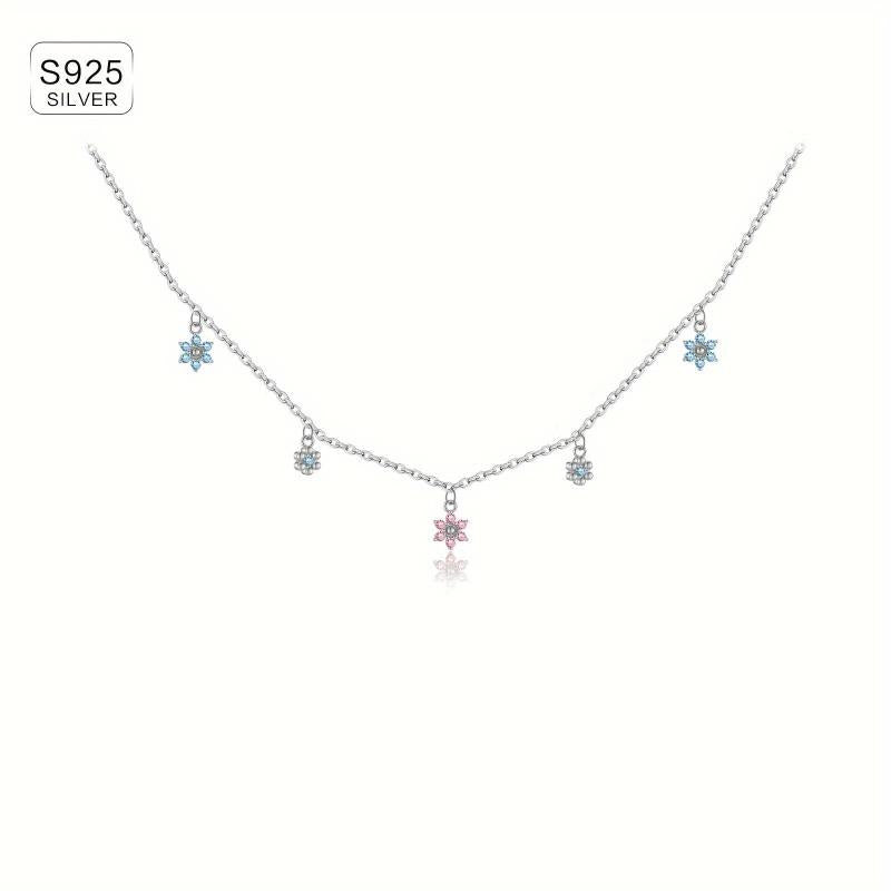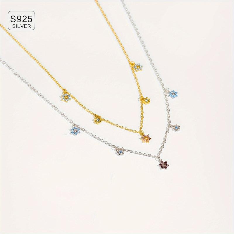Elegant and luxurious necklace featuring a snowflake plum blossom pendant with colorful zirconia stones. Perfect for adding a touch of sparkle to any outfit.