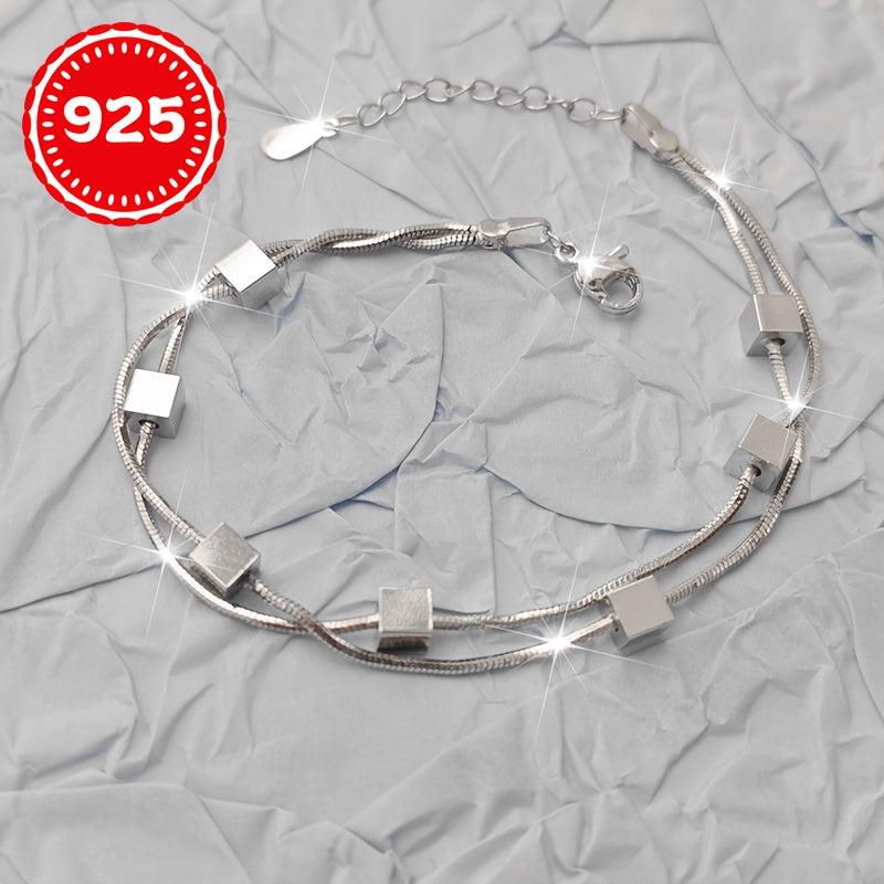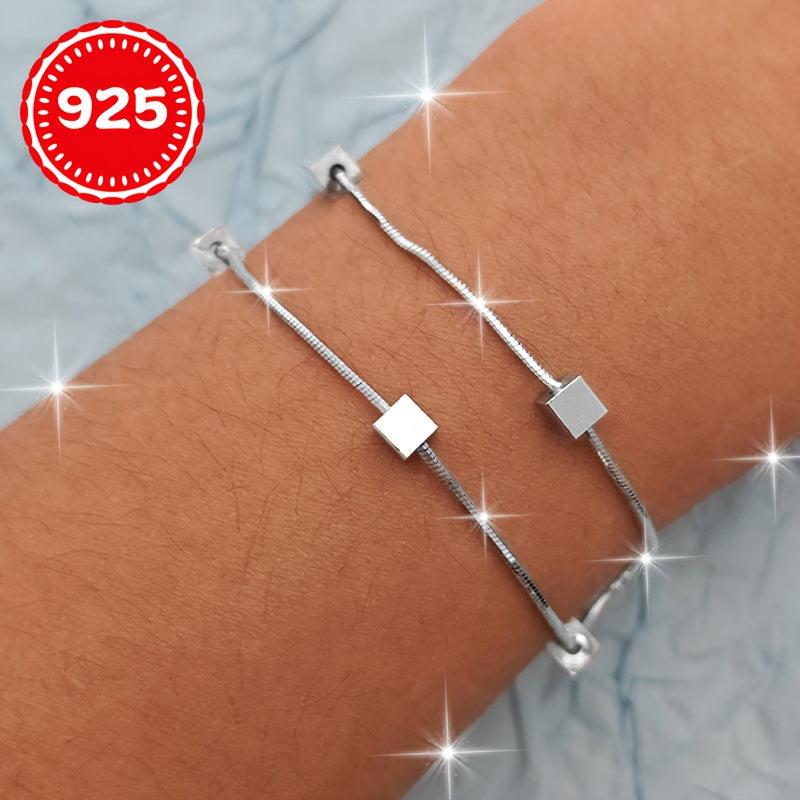 This minimalist square bangle bracelet is crafted from 925 silver, making it hypoallergenic. Perfect as a gift for couples and friends, suitable for everyday wear and weddings.