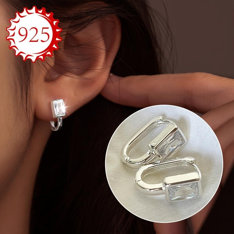These stunning square geometric earrings are made of 925 sterling silver, featuring durable zirconia stones. They are hypoallergenic and perfect for daily wear, weddings, beach vacations, and more.