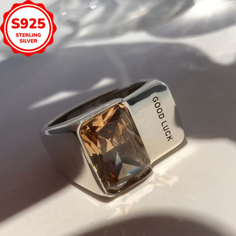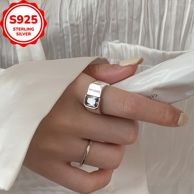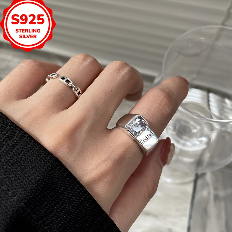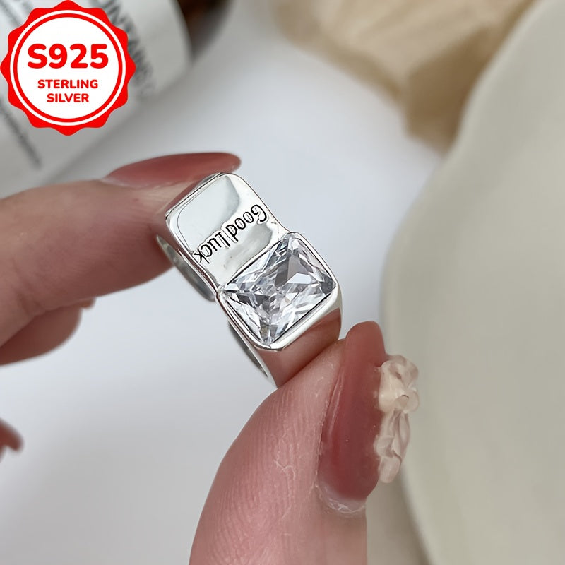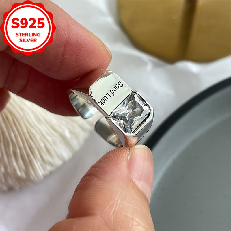 This stunning 925 sterling silver ring features a square design with synthetic zirconia stones and a boho style. It is great for daily wear or special occasions and makes a perfect Valentine's gift.