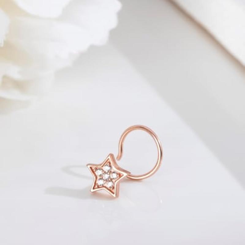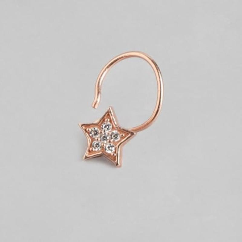 925 Silver Star CZ Rose Plated Nose Pin Gift for Girls