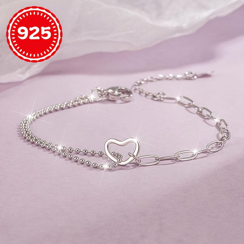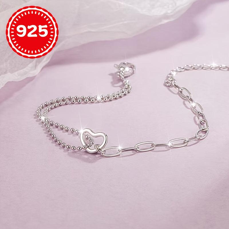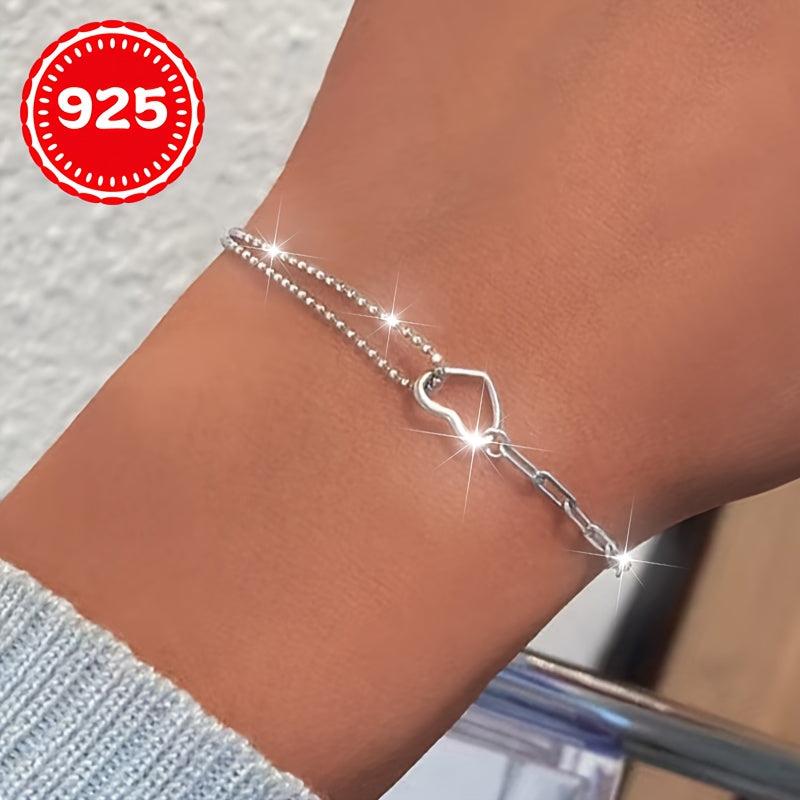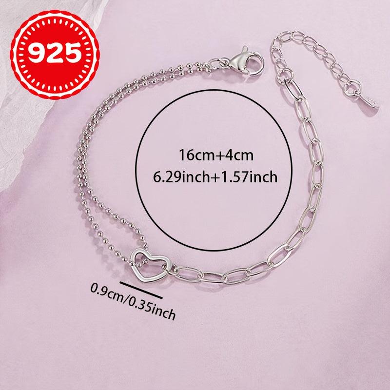 This stunning 925 silver bracelet features a combination of star and heart charms on a delicate chain. It is perfect for everyday wear or special occasions, making it an ideal gift for birthdays, weddings, holidays, Ramadan, or Mother's Day.