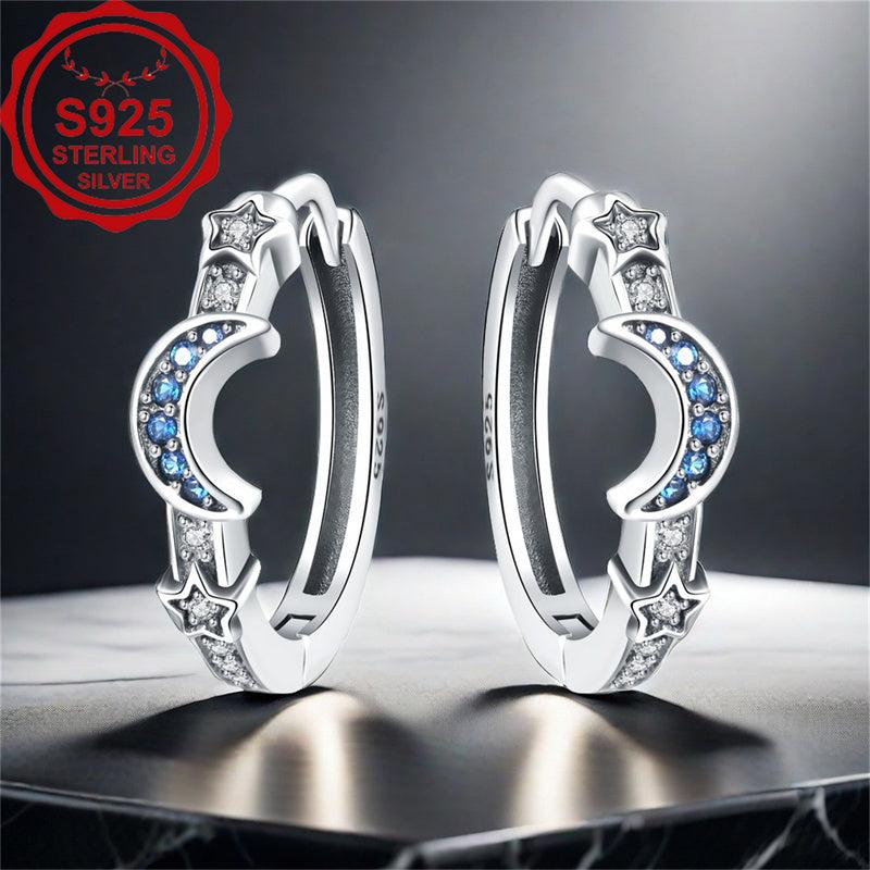Elevate your style with this charming pair of 925 silvery star and moon charms with big ears. Perfect as a gift for women who love unique jewelry pieces.