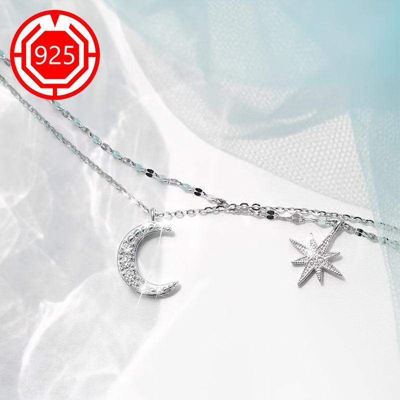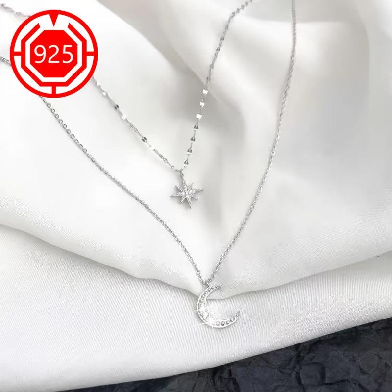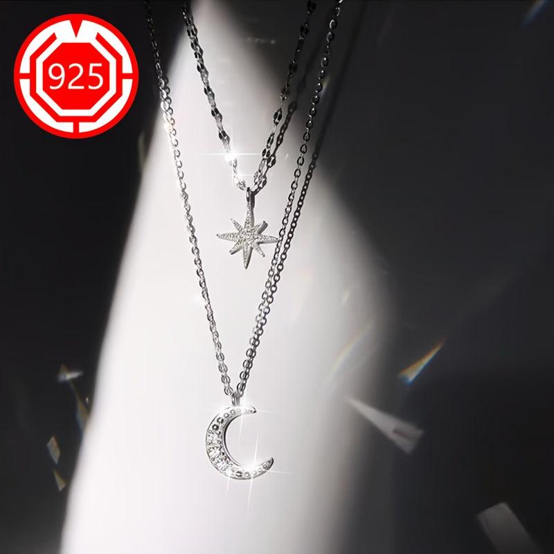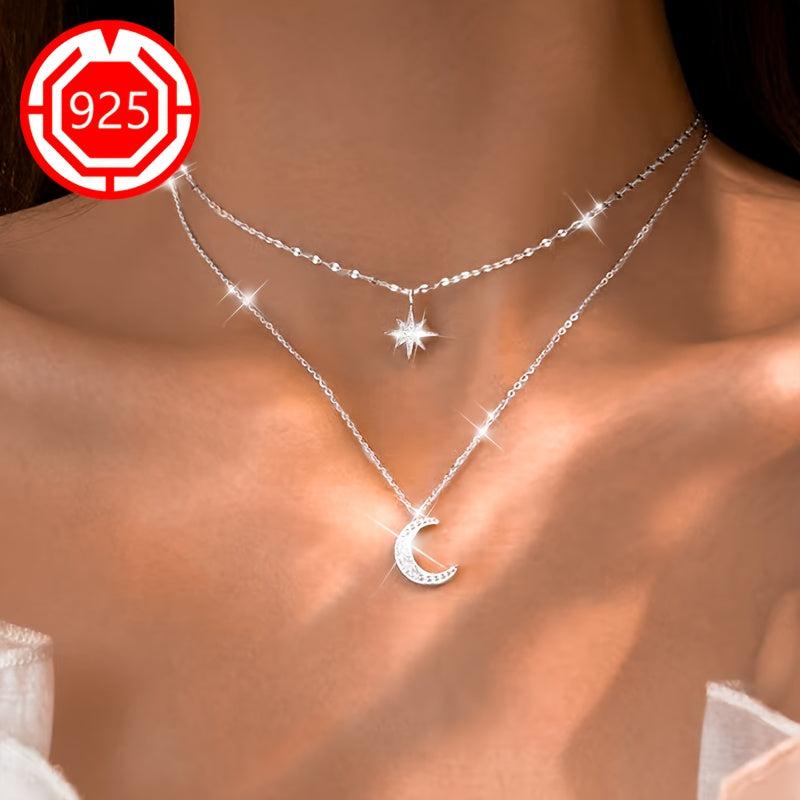Elegant and versatile 925 silver layered necklace featuring star and moon pendants. Perfect for daily wear, weddings, beach vacations, and special occasions. Hypoallergenic and lightweight for comfortable wear.