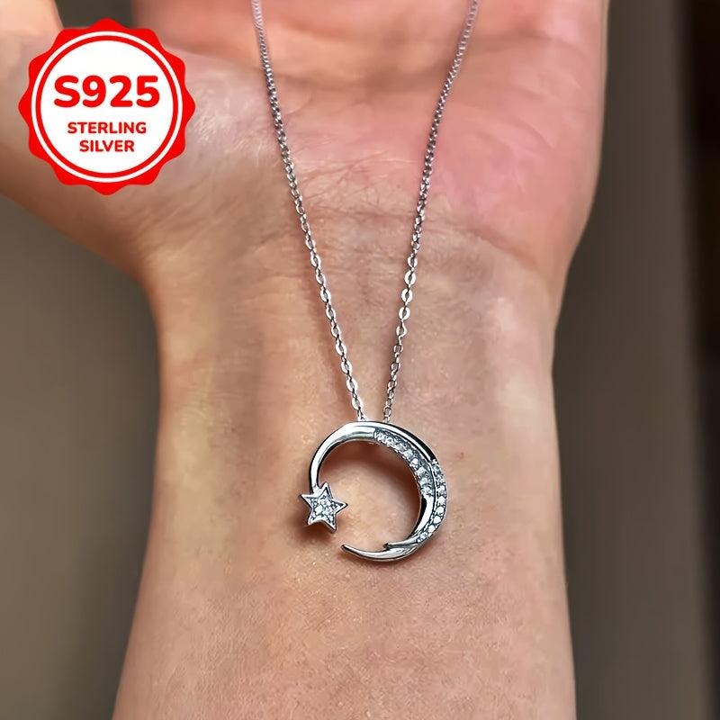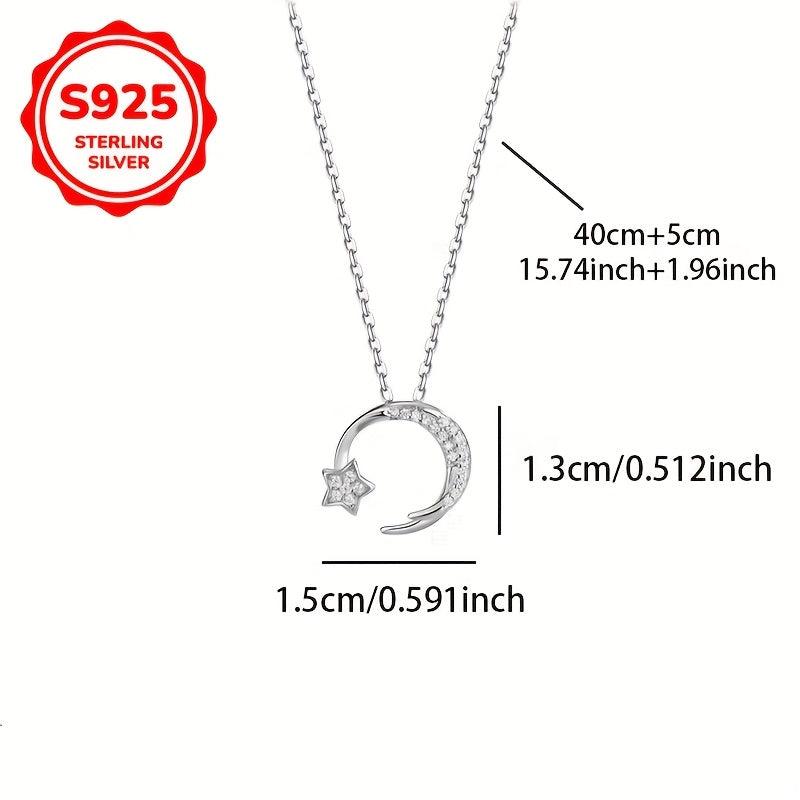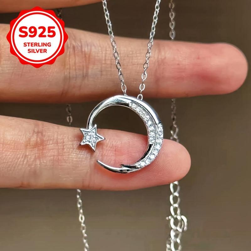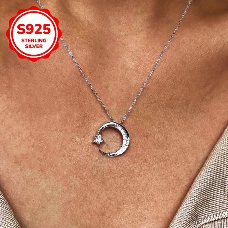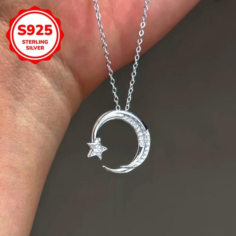 Add a touch of celestial beauty to your look with this stunning 925 silver star and moon pendant necklace. Perfect for everyday wear or special occasions.