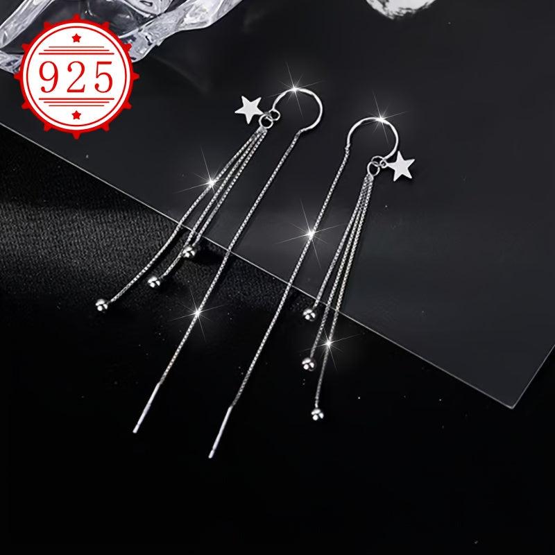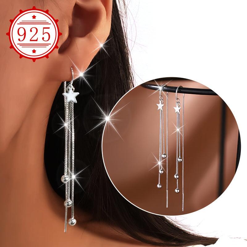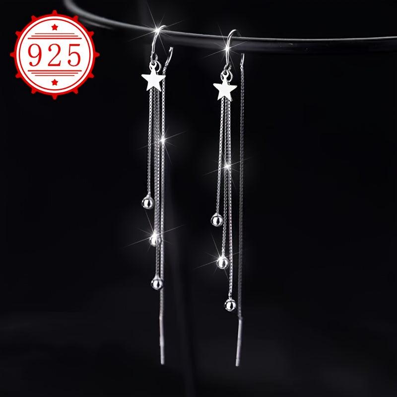These hypoallergenic earrings feature a fashionable design with a star round bead tassel, perfect for daily wear, weddings, and gifting to friends or partners.
