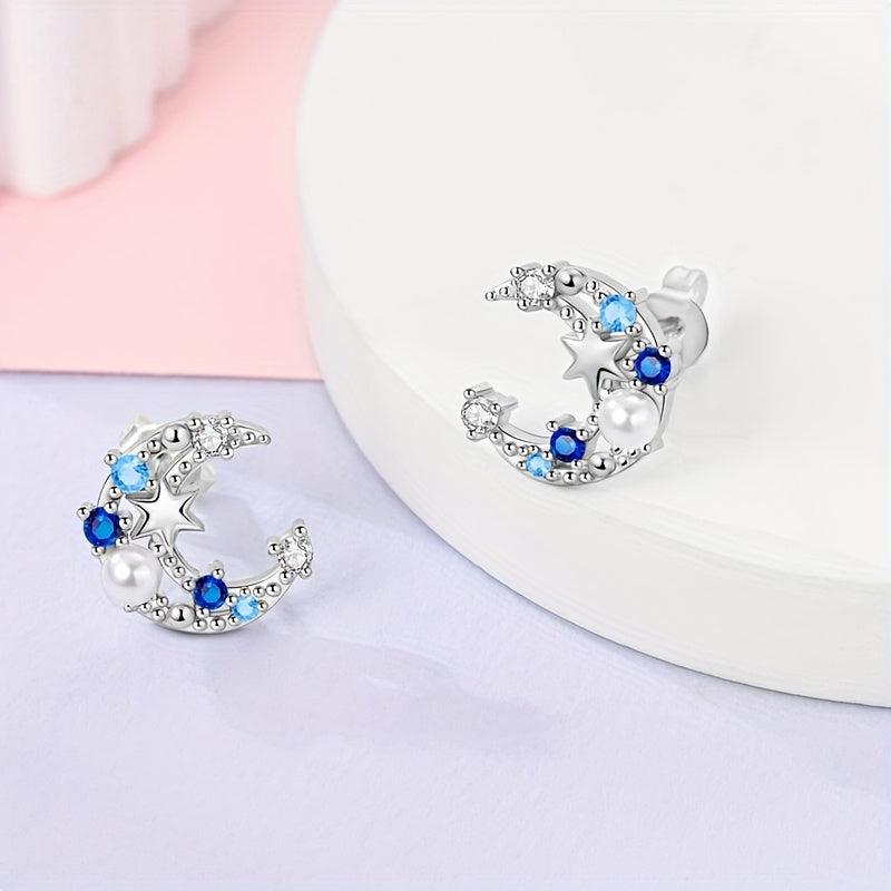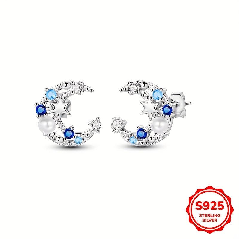 Add a touch of celestial charm to your look with these 925 silver starry moon earrings. Perfect for women's wedding party jewelry, these earrings are a stylish and elegant choice.