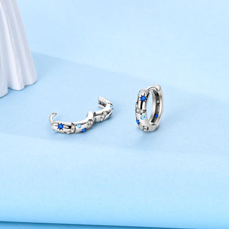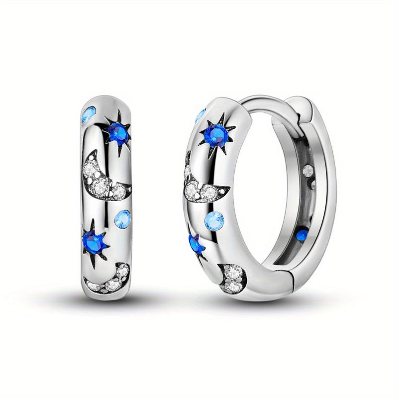 Enhance your style with these elegant 925 silver starry moon earrings featuring glittering zirconia accents. Perfect as a gift for women.