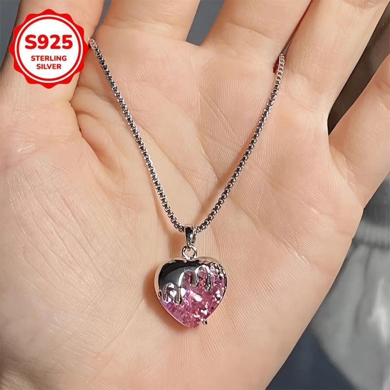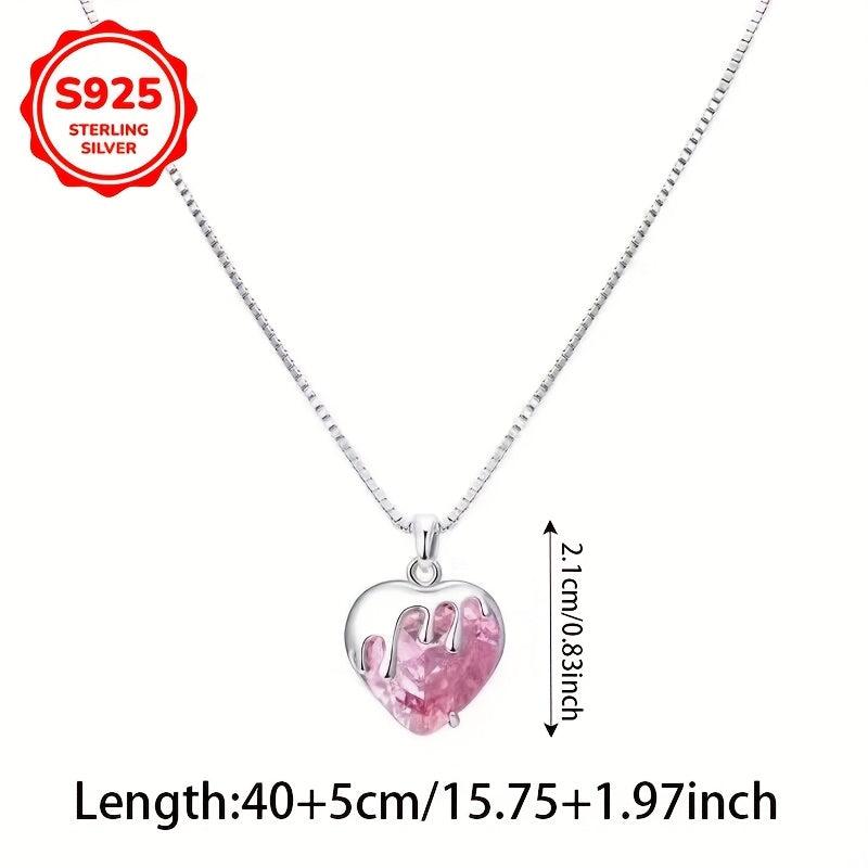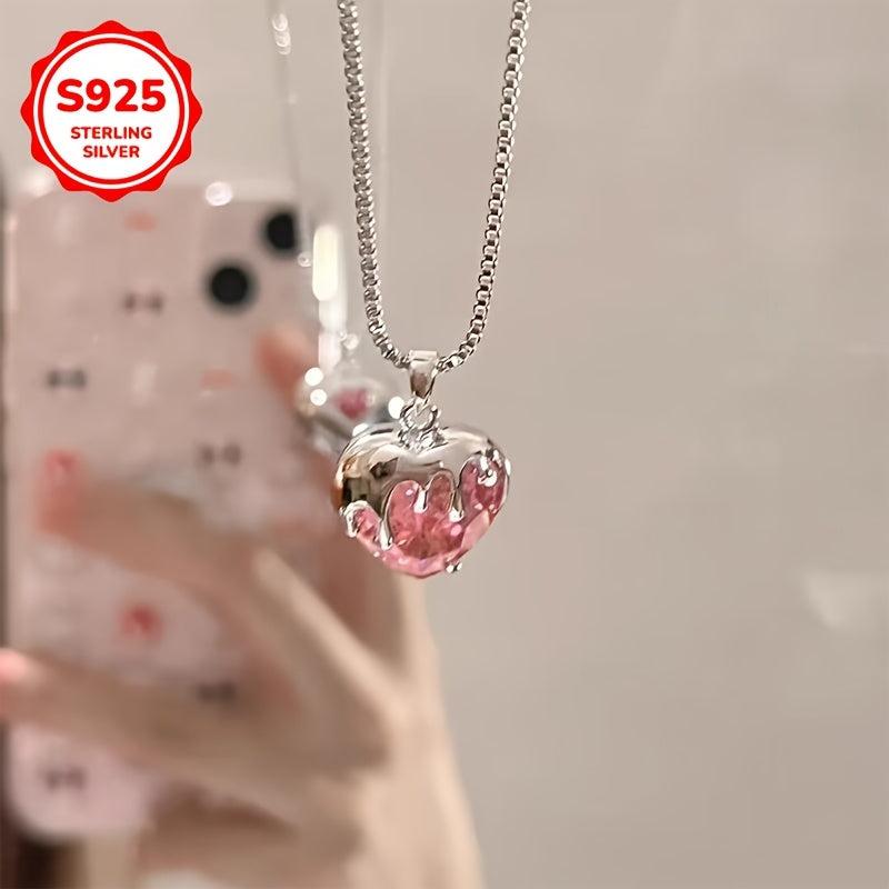 This stunning necklace features a strawberry heart pendant with sparkling synthetic zirconia, perfect for women with low allergy. A great gift for girls.