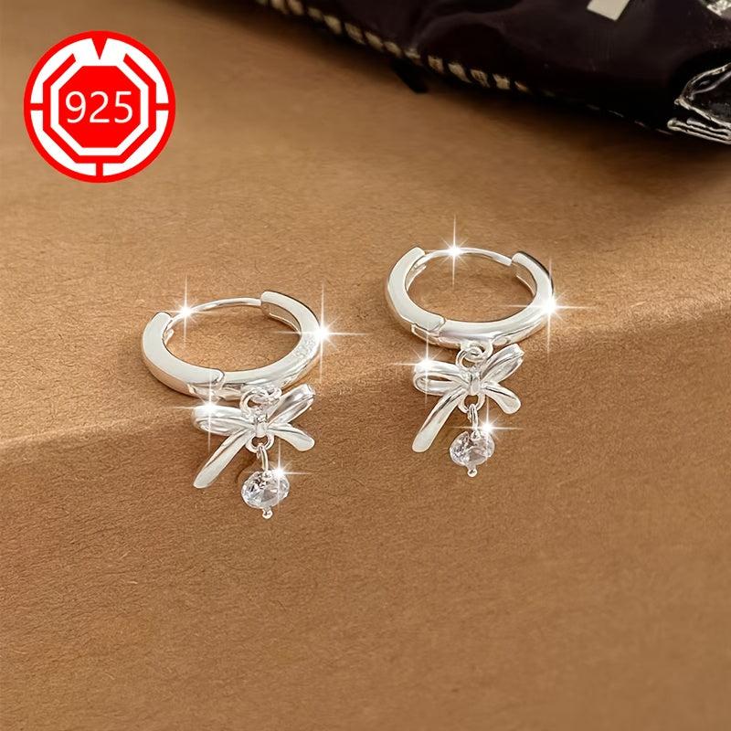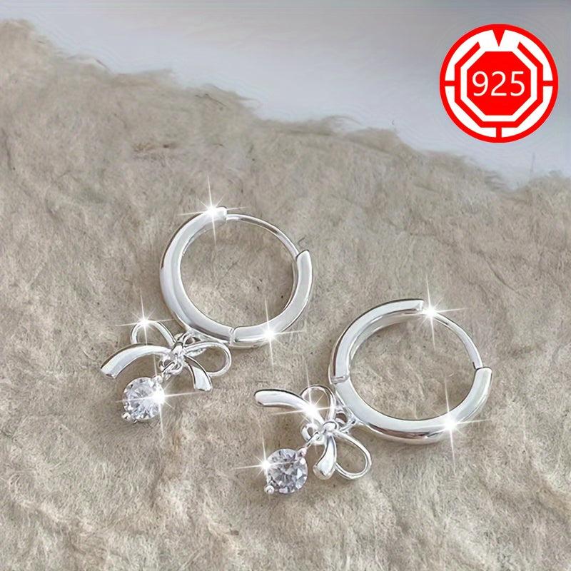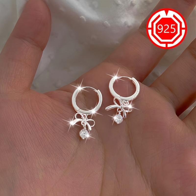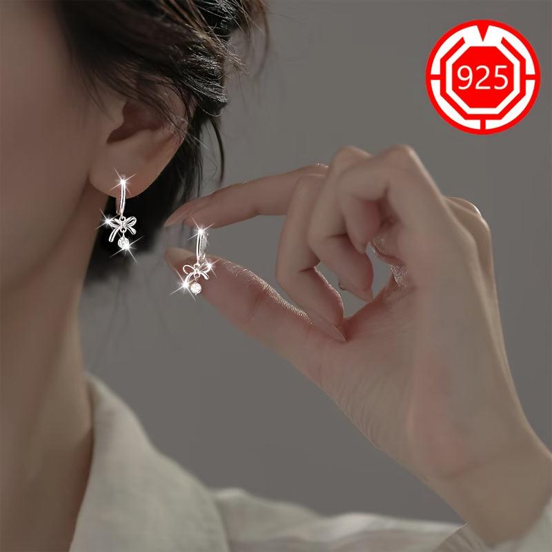 These elegant stud earrings are made of 925 sterling silver with synthetic cubic zirconia stones. The golden plated ballet bow dangle adds a touch of glamour. Hypoallergenic and perfect for daily wear.