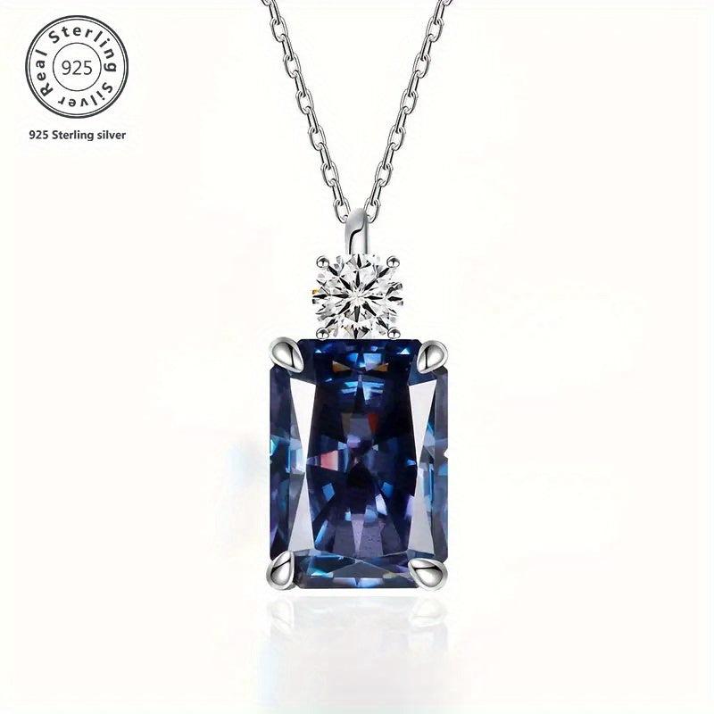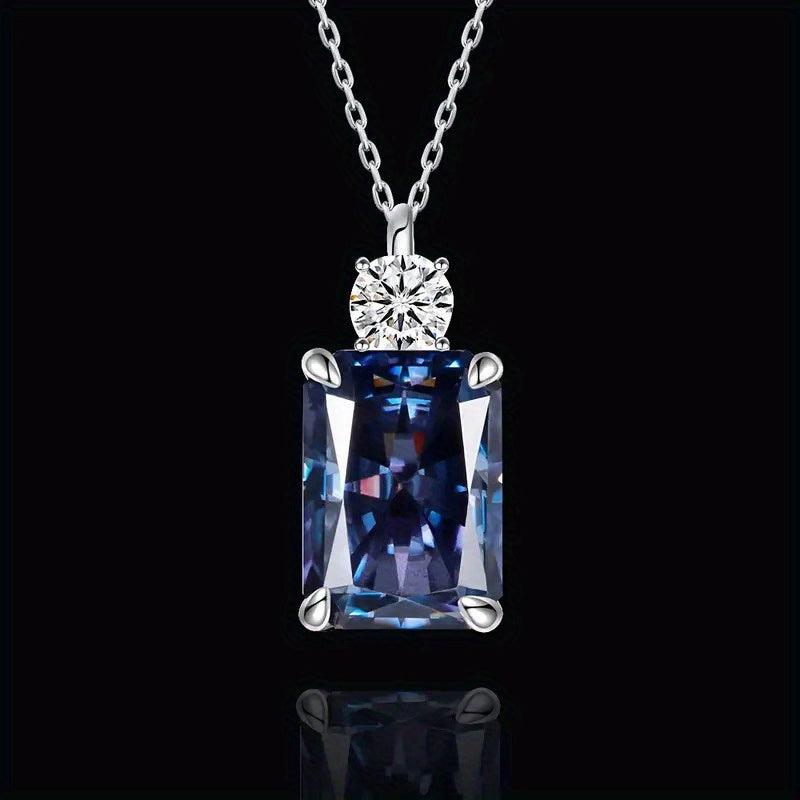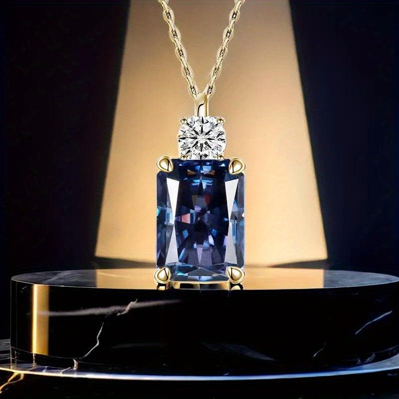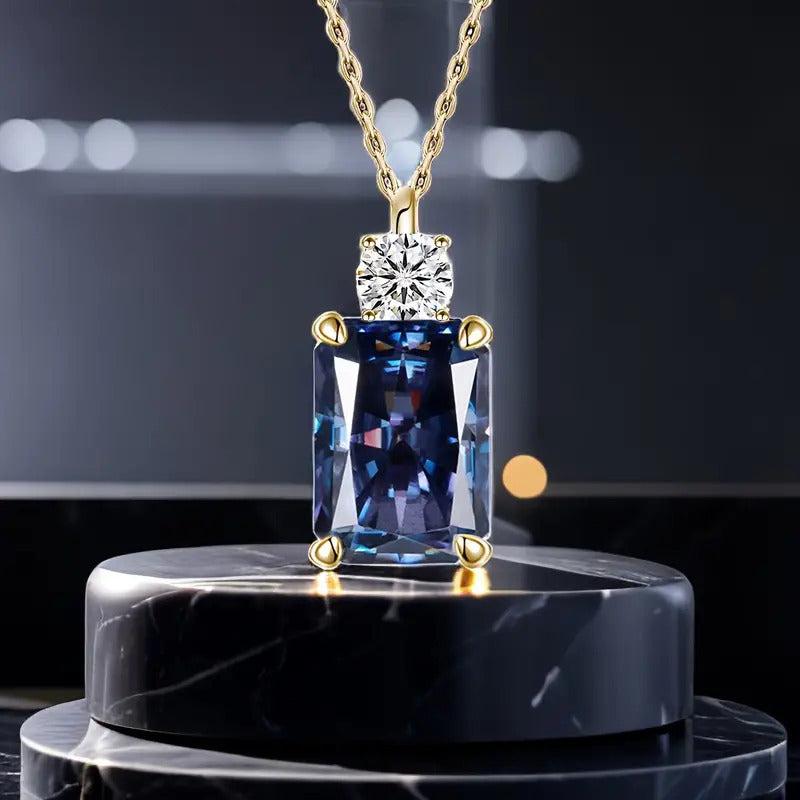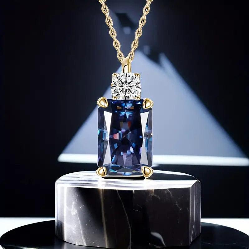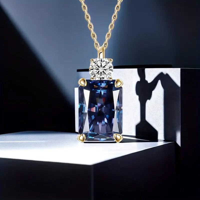 Add a touch of elegance to your look with this stunning pendant necklace featuring a rectangular tanzanite gemstone and D VVS1 round cut moissanite stone. Perfect for daily wear or special occasions.