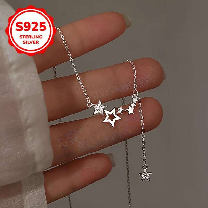 Elegant and stylish 925 silver necklace with a single strand tassel star design. Hypoallergenic and suitable for all 4 seasons.
