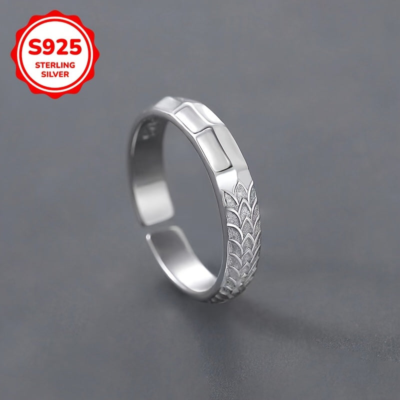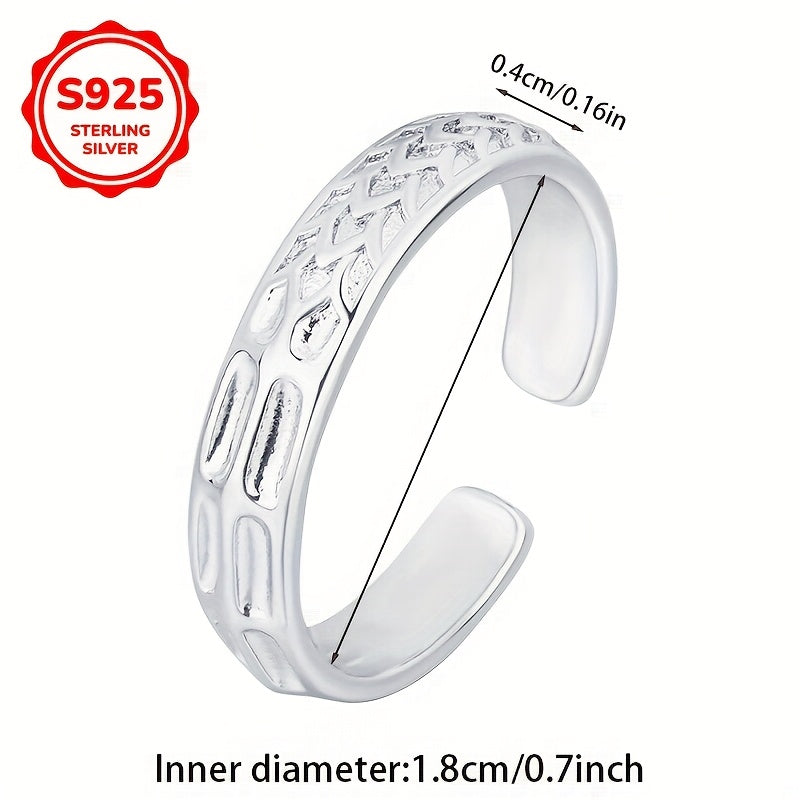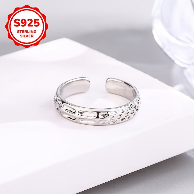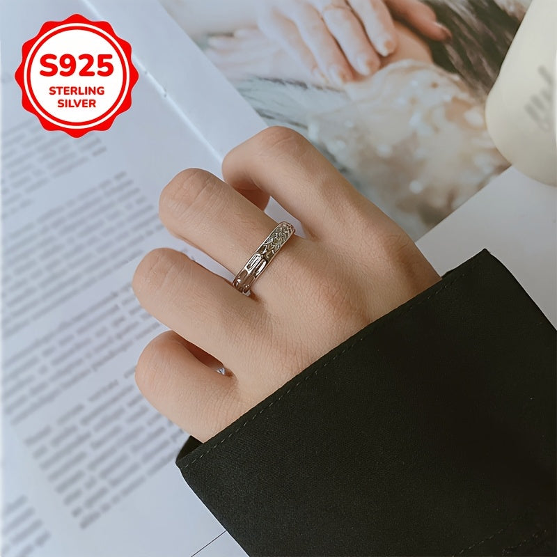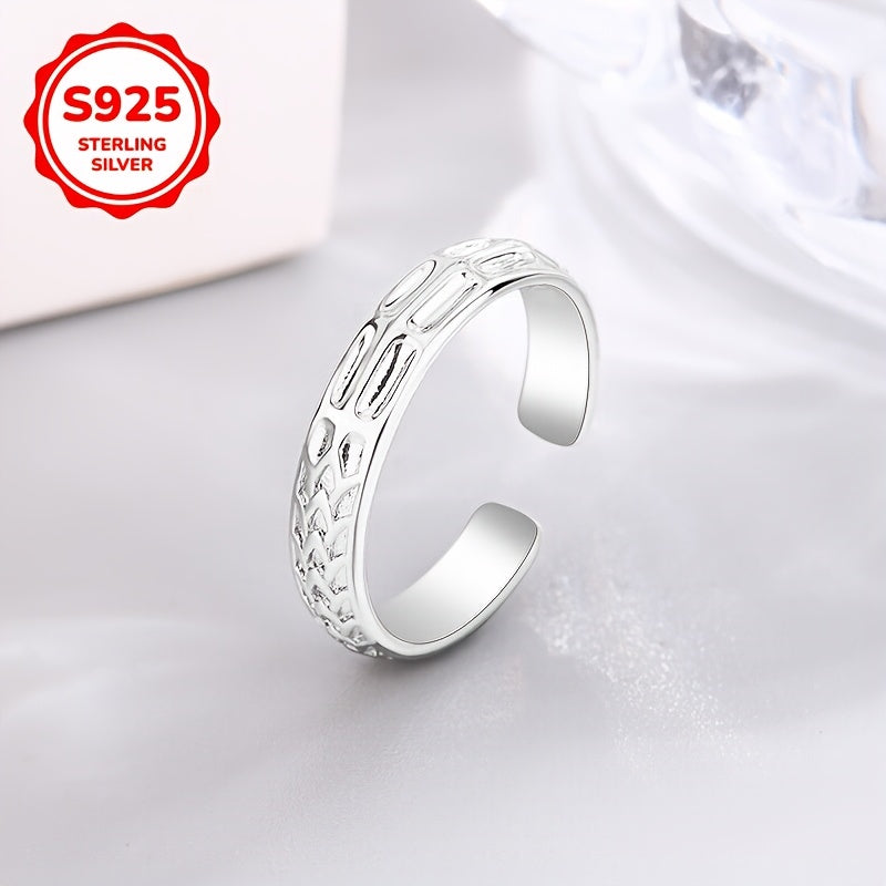 Hypoallergenic 925 sterling silver ring with a textured open band design. Ideal for daily wear and perfect for Valentine's Day. Anti-tarnish finish for long-lasting shine. Lightweight at 2.7g, suitable for all seasons.