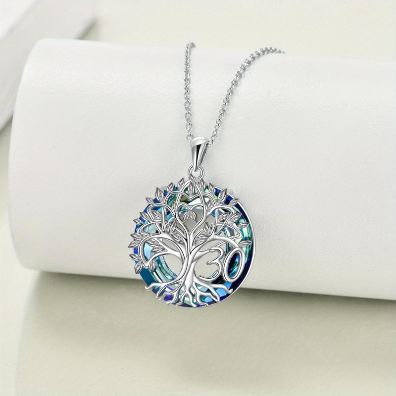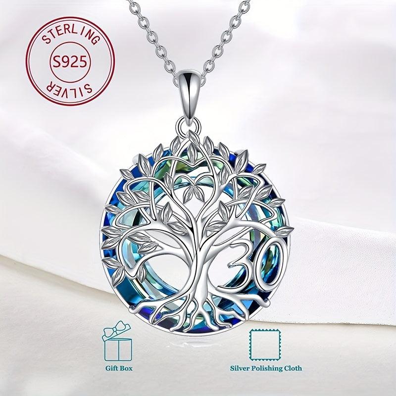Celebrate 30th birthday with this elegant tree of life necklace made of 925 sterling silver and artificial crystal. Perfect gift for women.