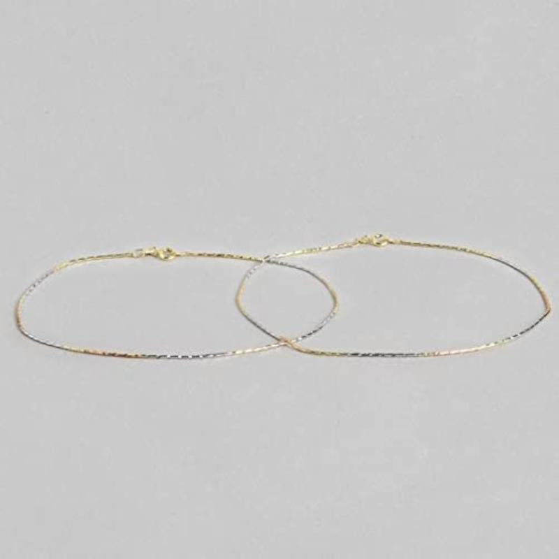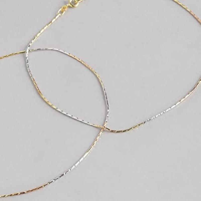 This pair of anklets features three layers of chains made from 925 sterling silver with rhodium and rose plating. Each anklet is hallmarked for authenticity.