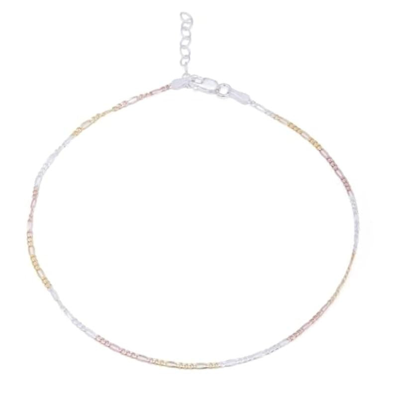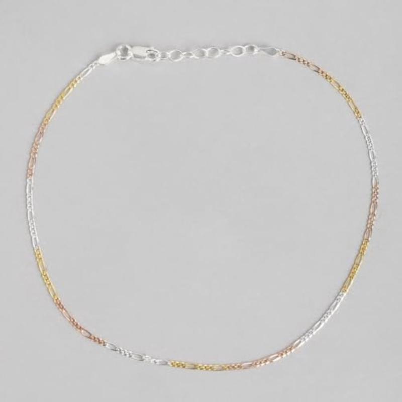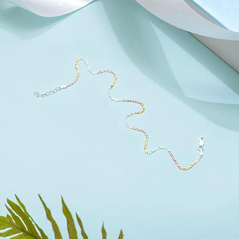 Upgrade your style with this chic 925 sterling silver anklet featuring a modest chain design. The triple tone plating adds a touch of elegance, making it perfect for any occasion. Hypoallergenic and comfortable to wear all day.