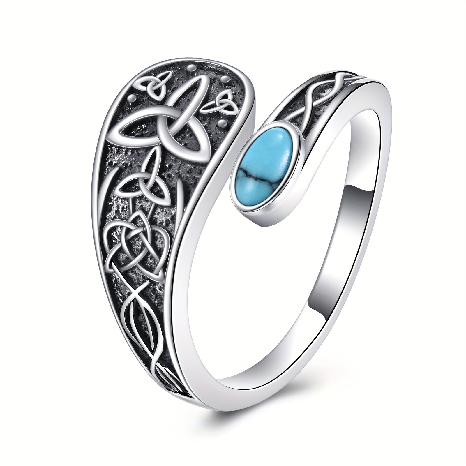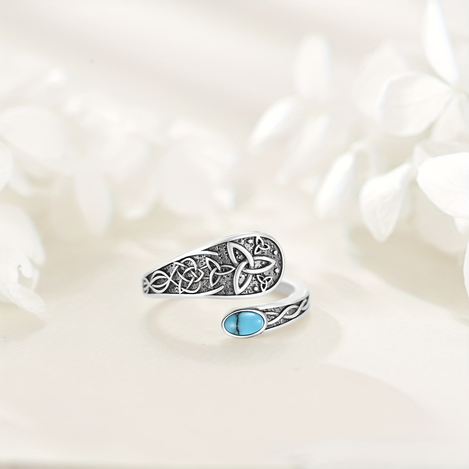 This vintage-style ring features a beautiful turquoise stone set in 925 sterling silver. It is adjustable and perfect for women who love unique jewelry pieces.