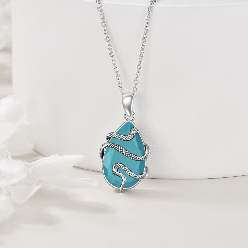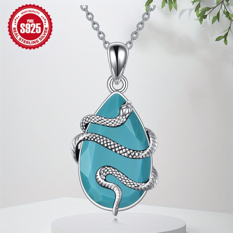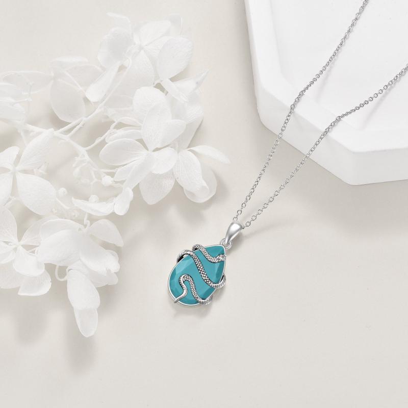 This YFN snake necklace features a turquoise pendant, ideal for spiritual protection and healing. Crafted from 925 sterling silver, it is a unique and stylish piece of jewellery.