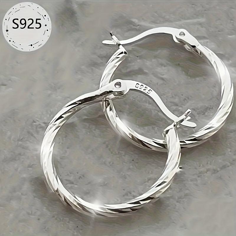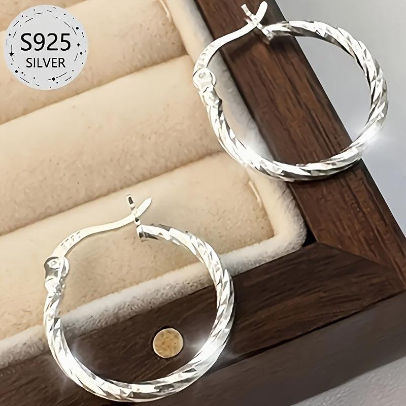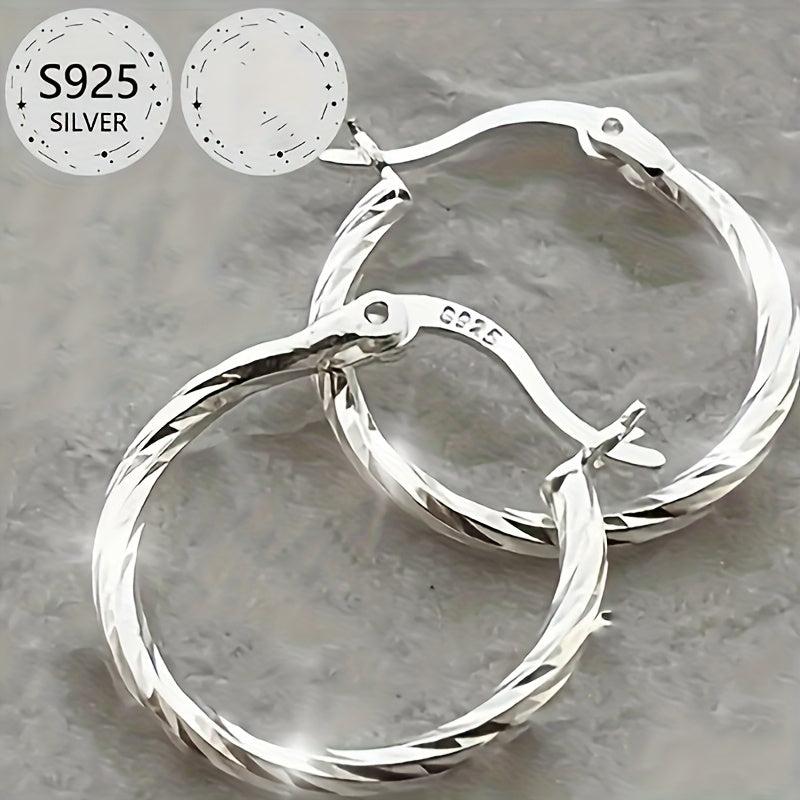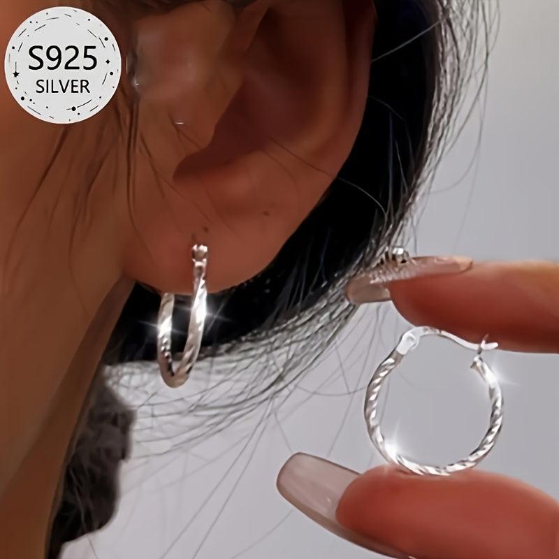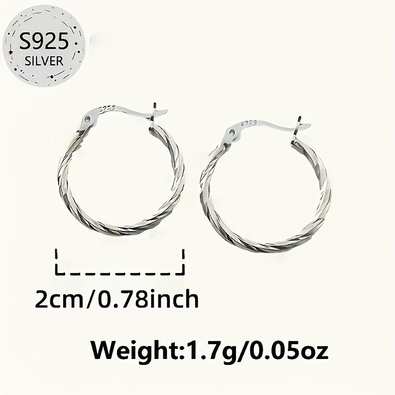 These hoop earrings are made of 925 sterling silver and feature a twisted design, perfect for daily wear. Lightweight and comfortable, these earrings are a great addition to any outfit.