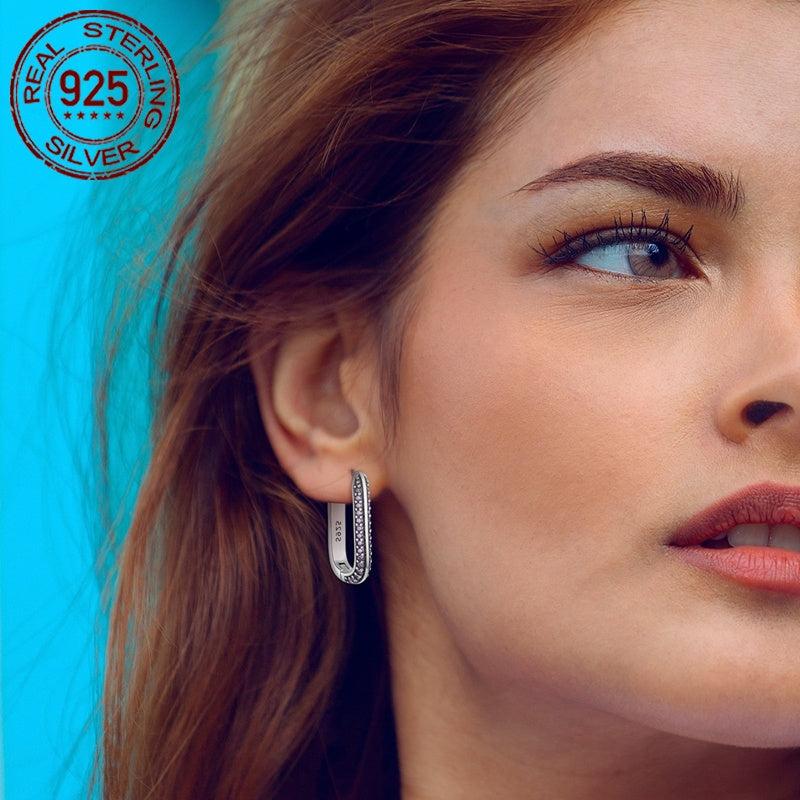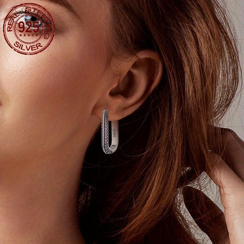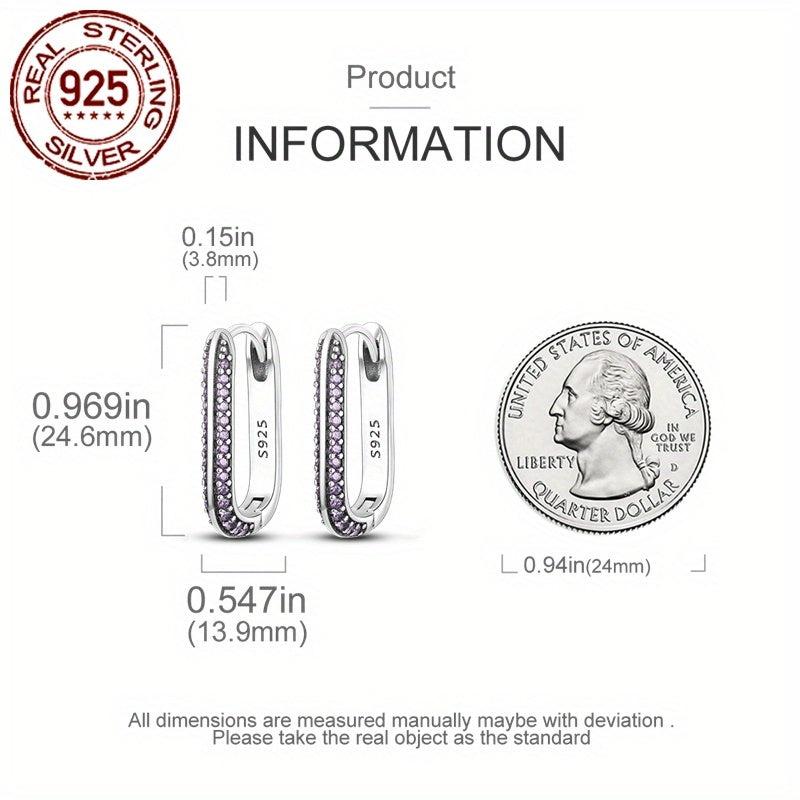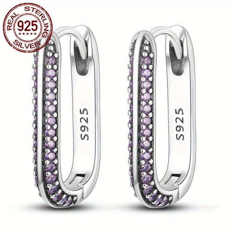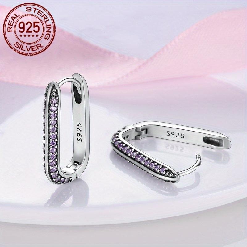 Elegant and hypoallergenic 925 sterling silver U-shaped earring featuring a purple zirconia inlay. Perfect for women and suitable for wedding parties, birthdays, Christmas, and Valentine's Day.
