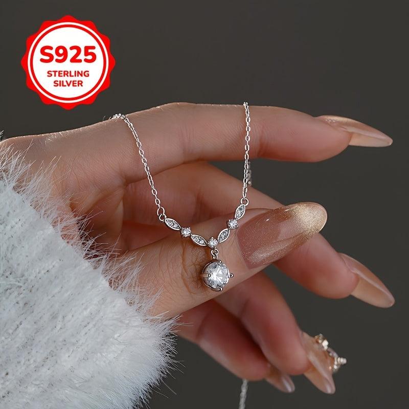 925 Silver V-Shaped Zirconia Pendant Necklace for Women