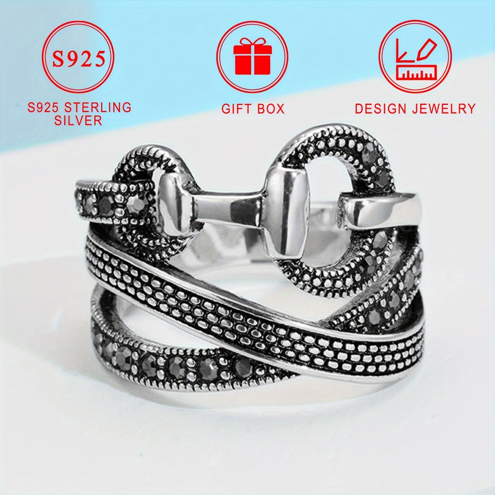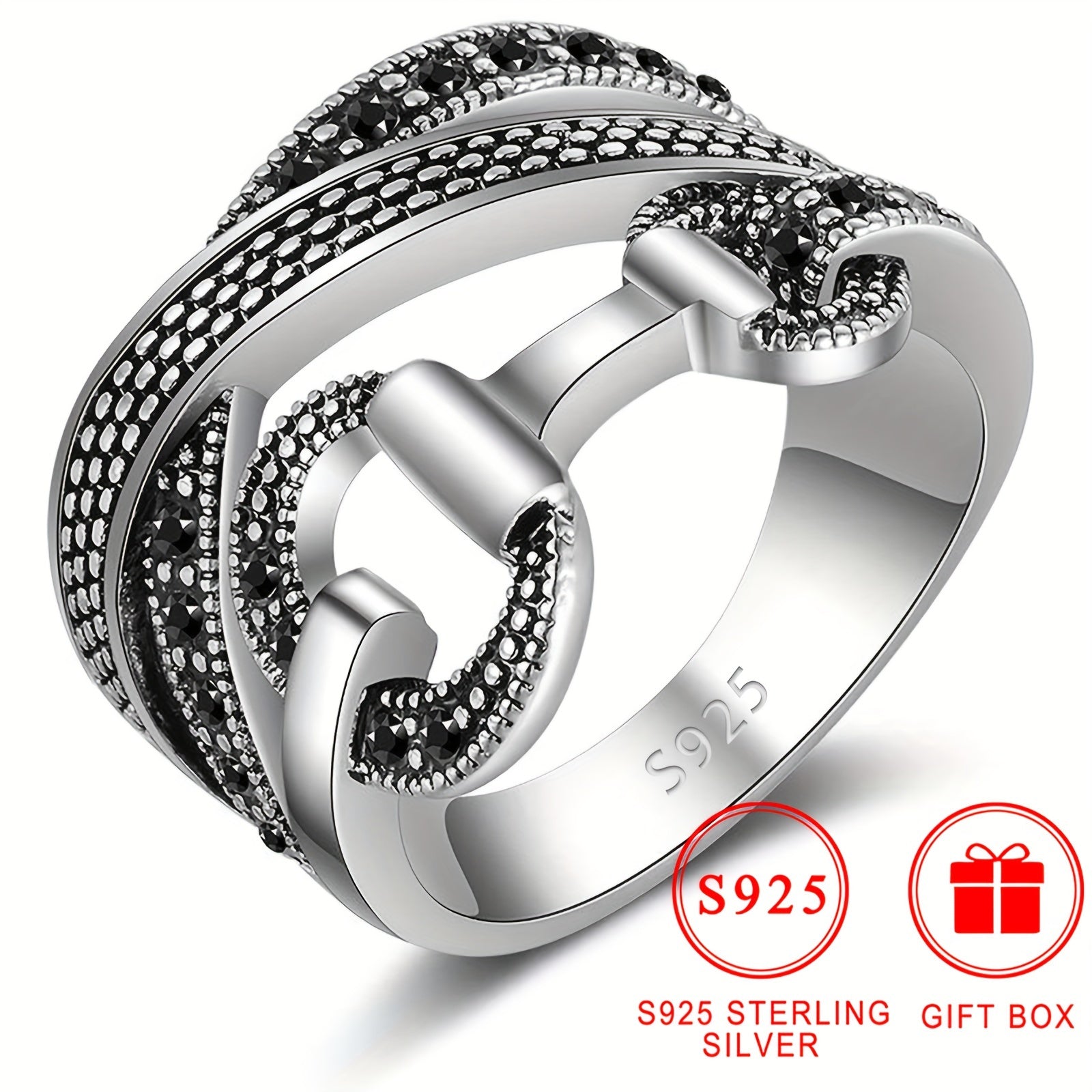 This vintage-inspired cross ring is made of 925 sterling silver and features sparkling cubic zirconia stones. Perfect for adding a bold statement to any outfit.