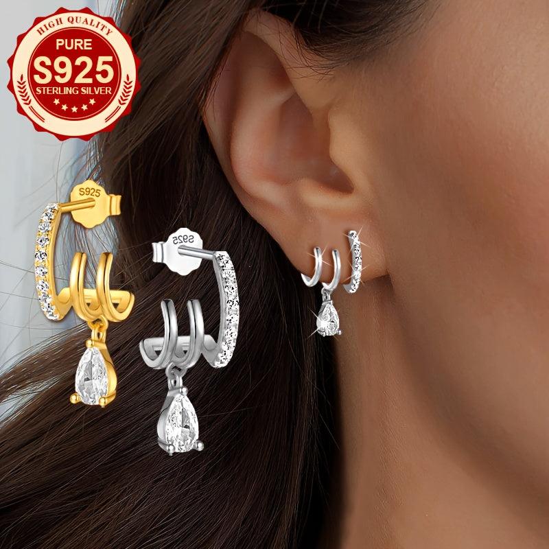 Delicate and versatile water drop earrings made of 925 silver, a perfect gift for women with low allergy risk.