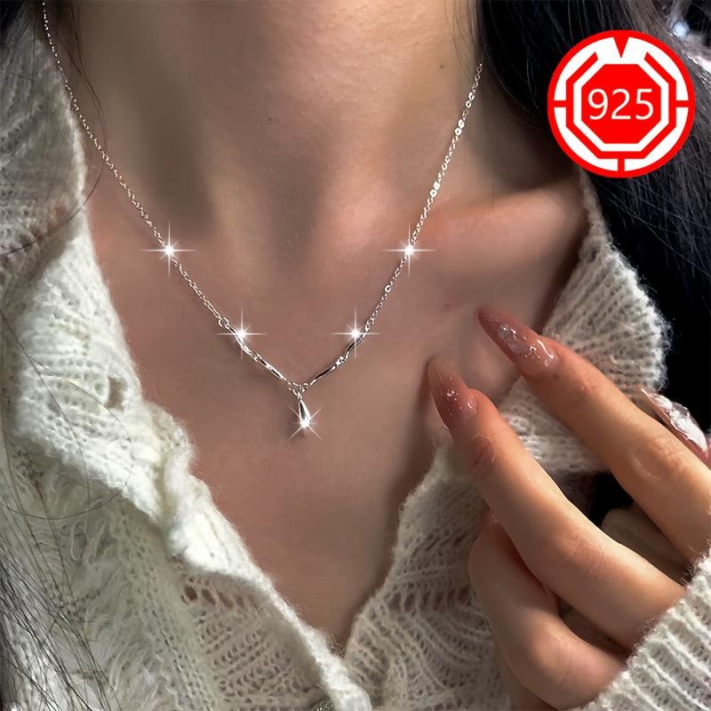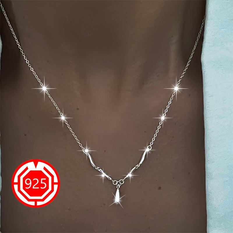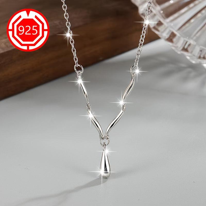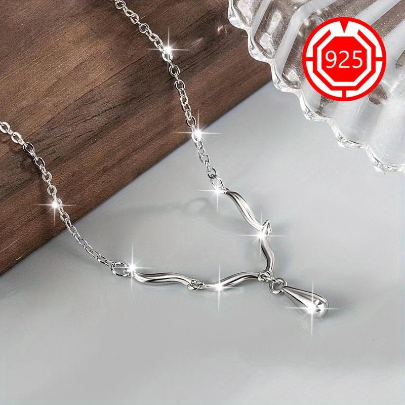This necklace features a beautiful water drop pendant on a wave chain. It is made of 925 silver, perfect for those with sensitive skin. Ideal as a gift for couples or friends.