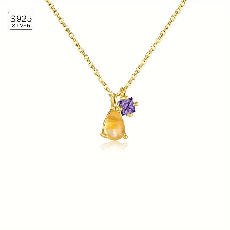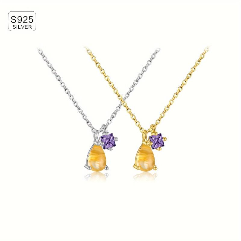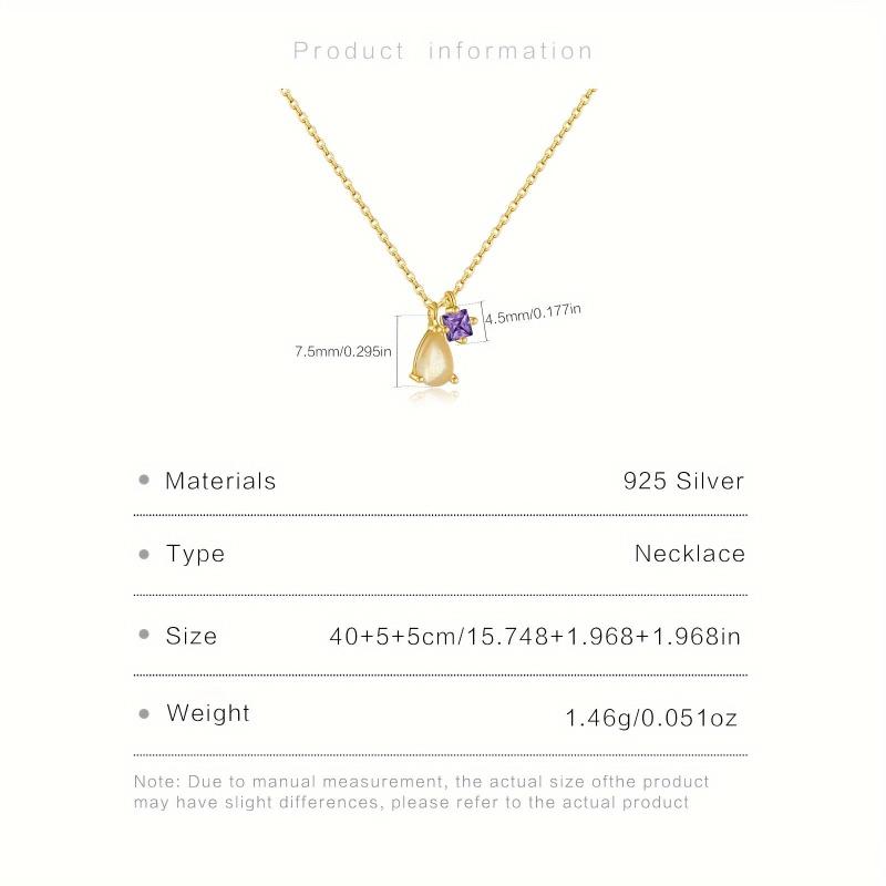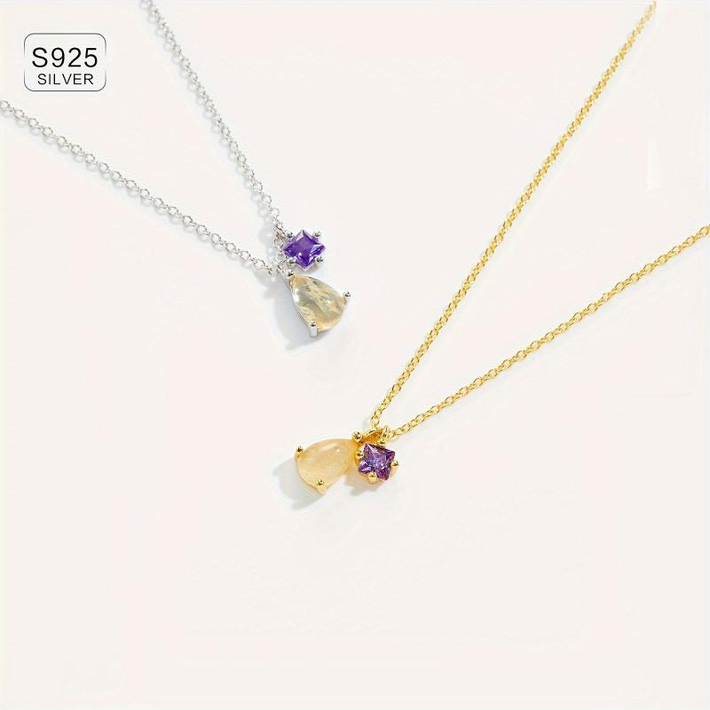 This stunning necklace features a water drop pendant embellished with purple synthetic zirconia, crafted from high-quality 925 silver. Perfect for women who love elegant jewelry.