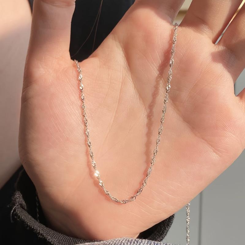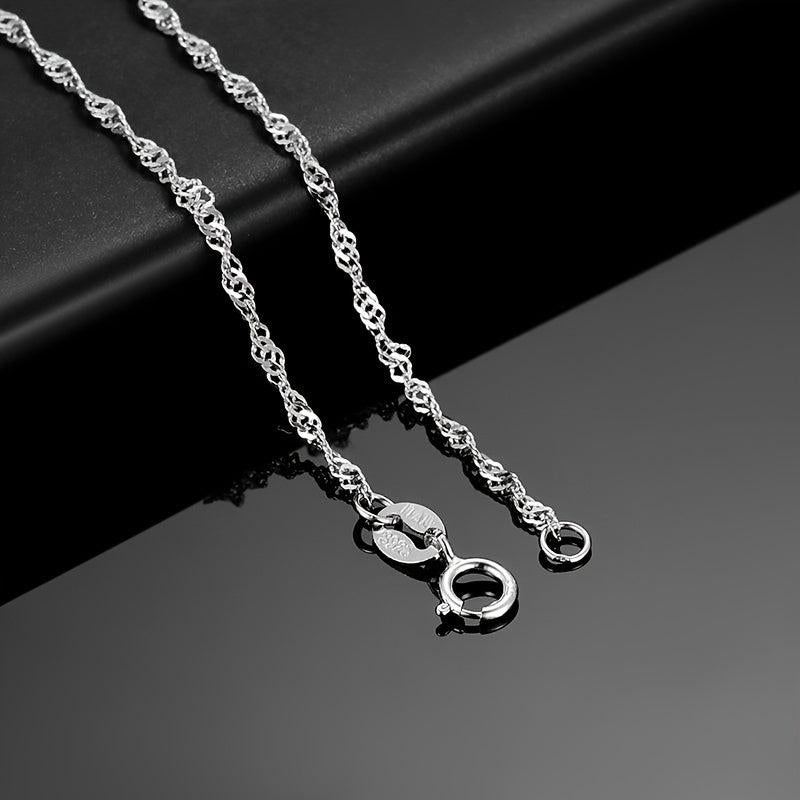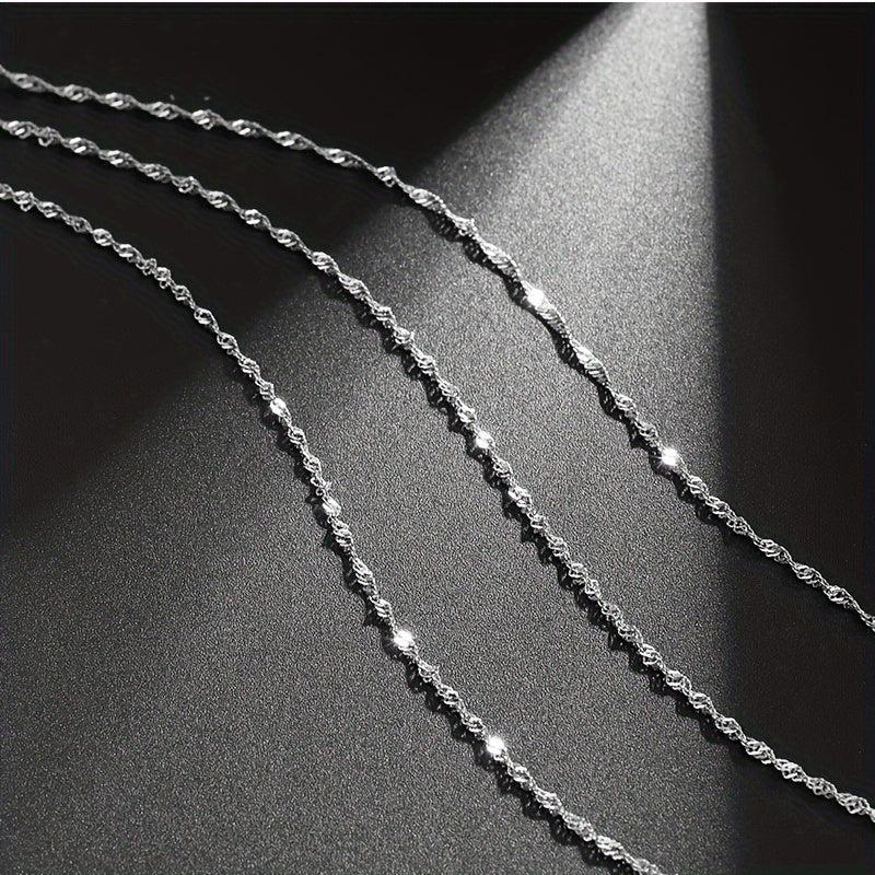 This classic 925 silver chain necklace features a water wave design that adds a touch of elegance to any outfit. It makes a perfect gift for women for daily use or special occasions.