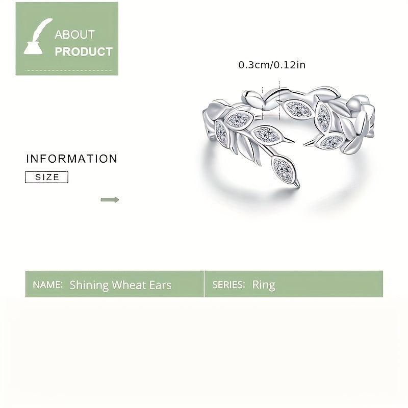 This stunning ring features a sparkling wheat ear design made of 925 sterling silver with a stylish golden plating. The adjustable open ring fits various finger sizes and adds a touch of elegance to any outfit.