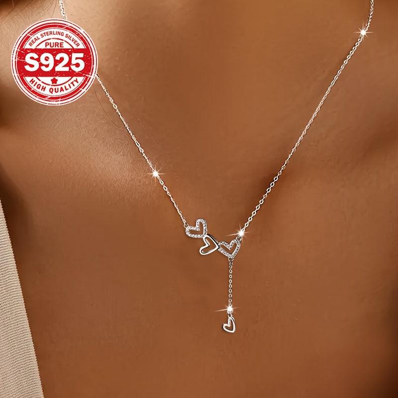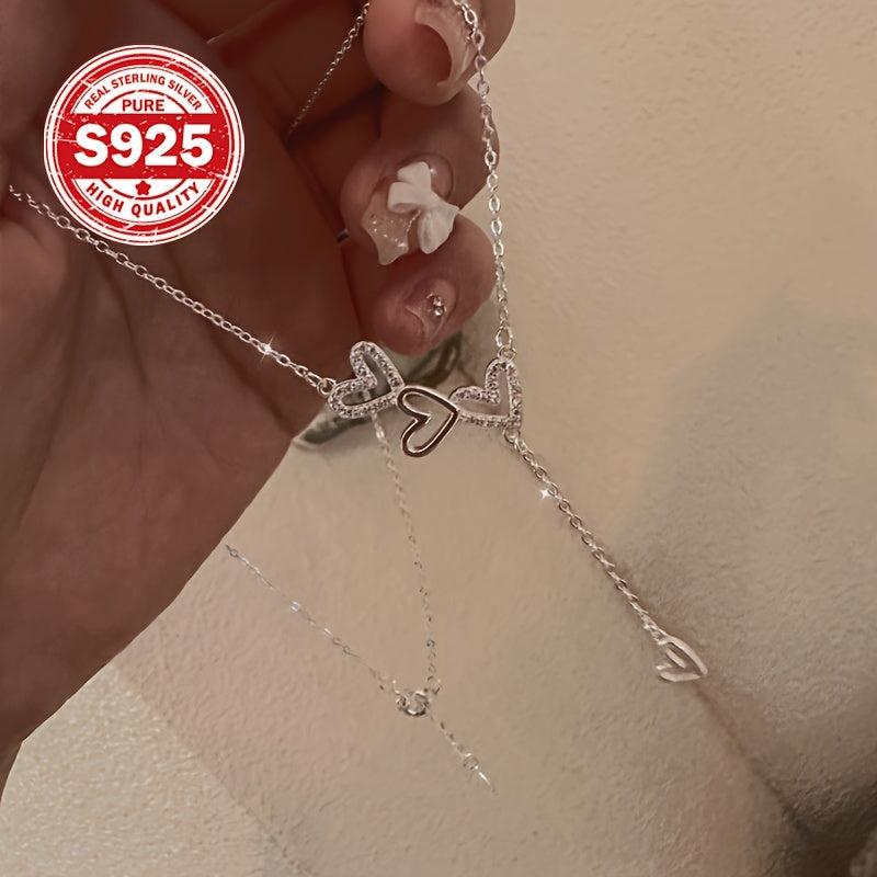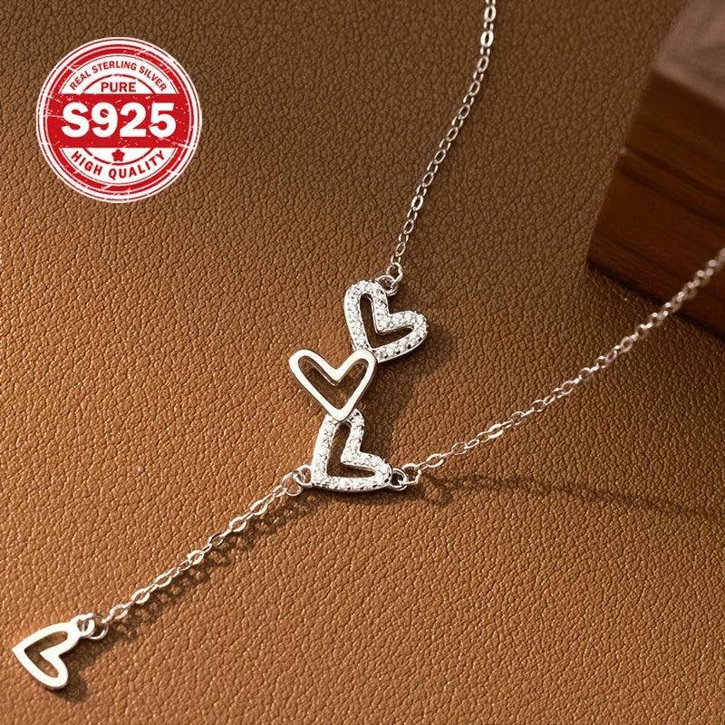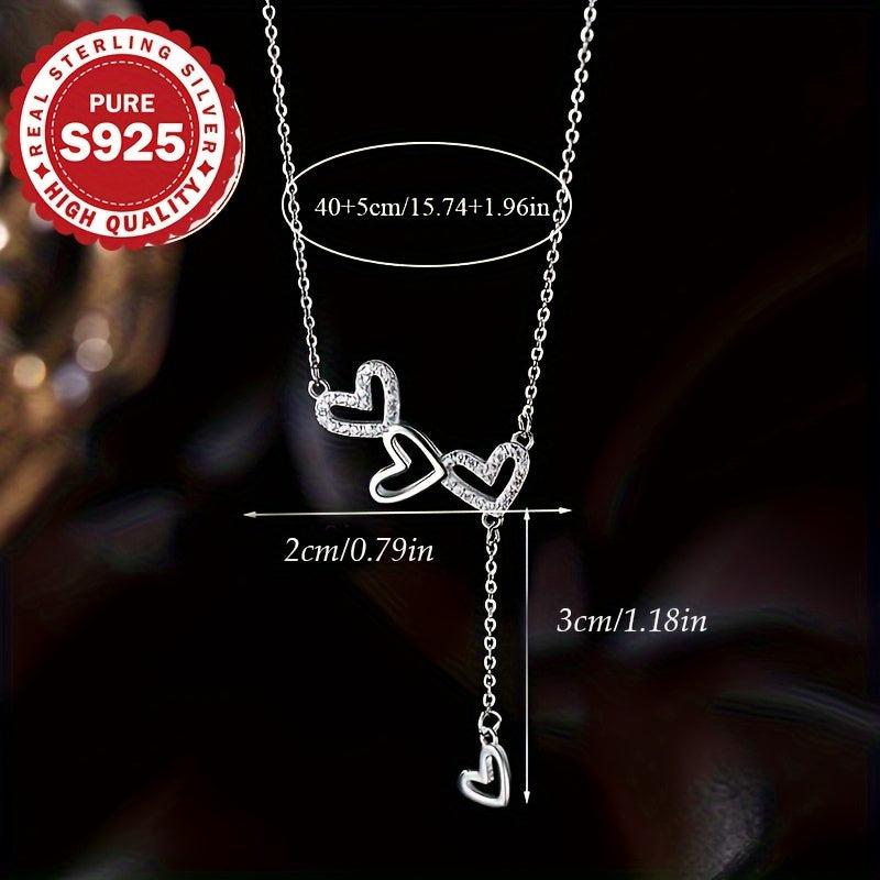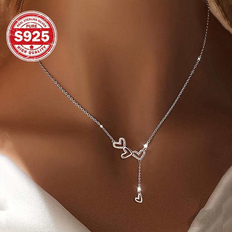 This elegant necklace is made of high-quality 925 silver and features three heart-shaped tassels. It weighs 2.6g and is a perfect accessory for weddings, banquets, or special occasions.