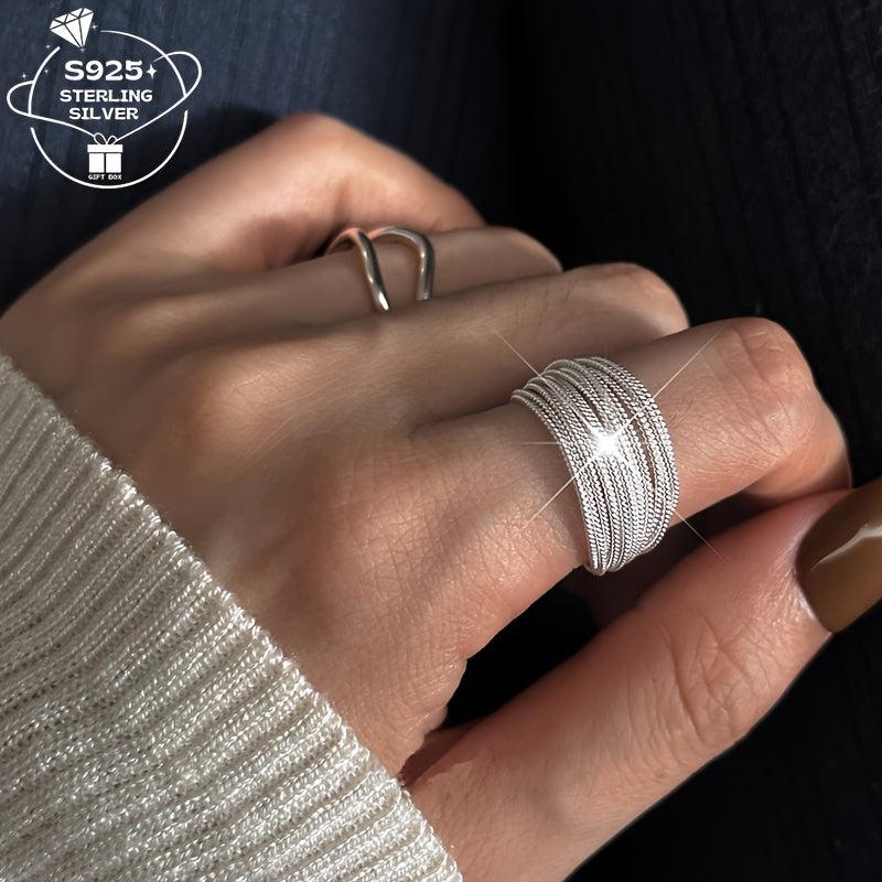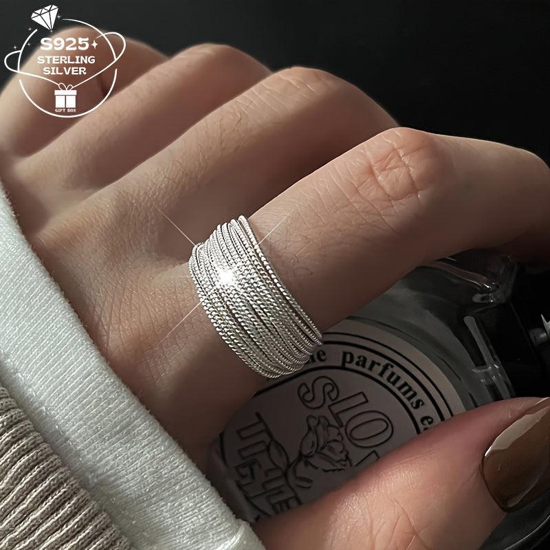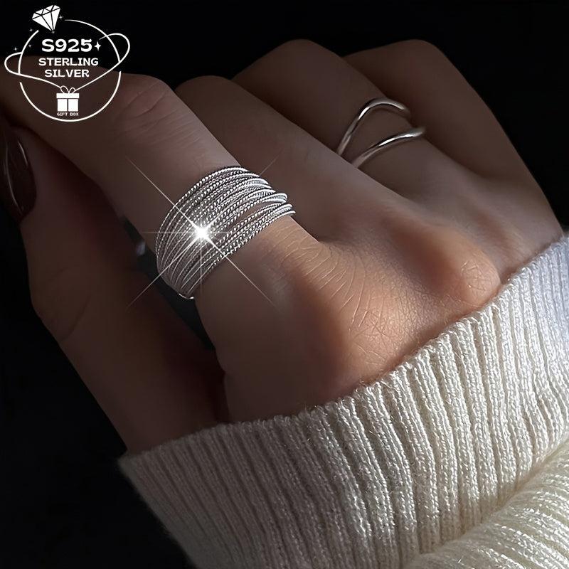 This women's ring is made of 925 silver with multiple layers and an adjustable opening. It is a versatile piece that can be paired with all outfits.