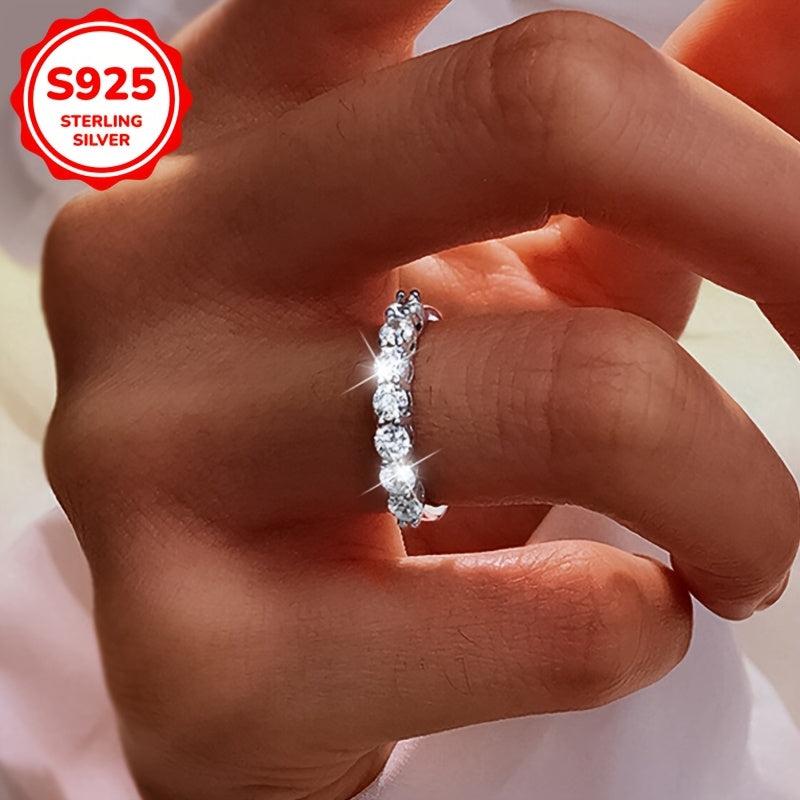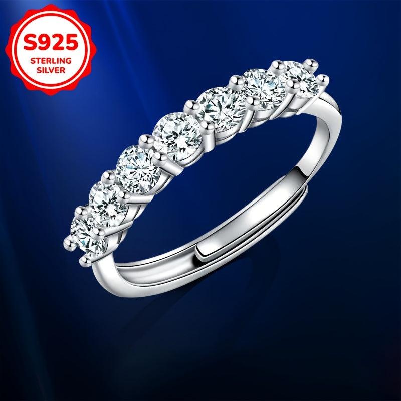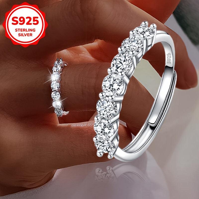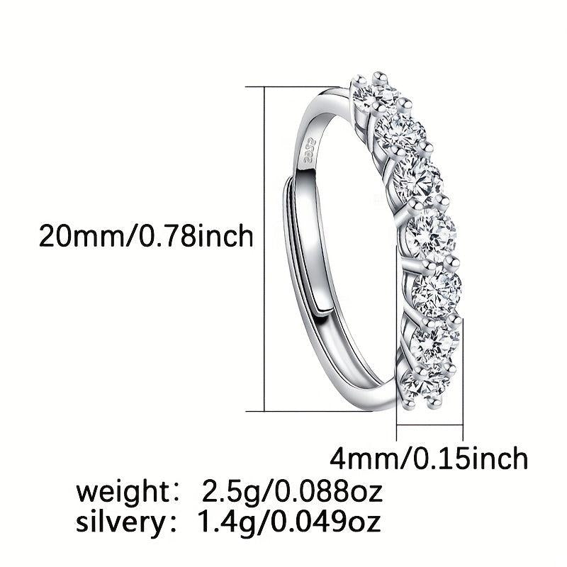 This beautiful 925 silver ring features high-quality synthetic zirconia stones in a single row design. The open adjustable style makes it perfect for weddings, proposals, and gifts.