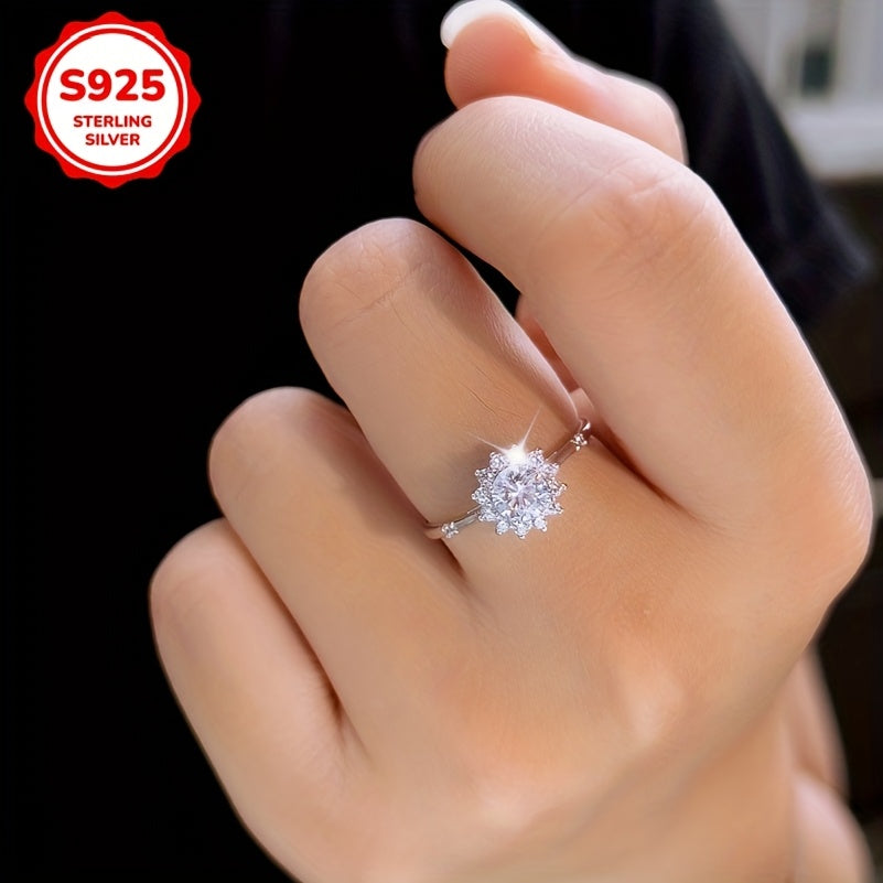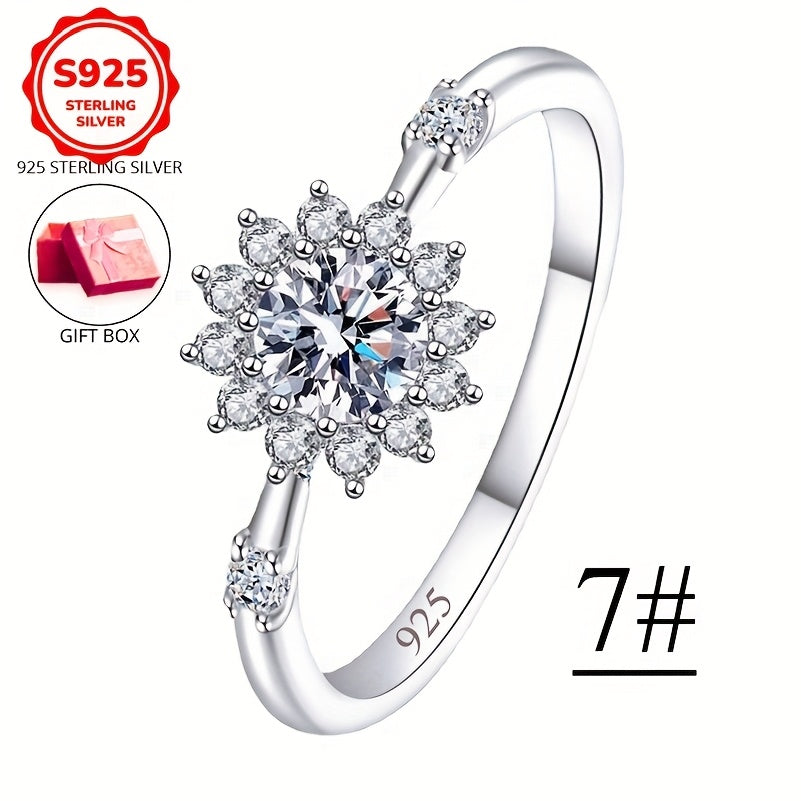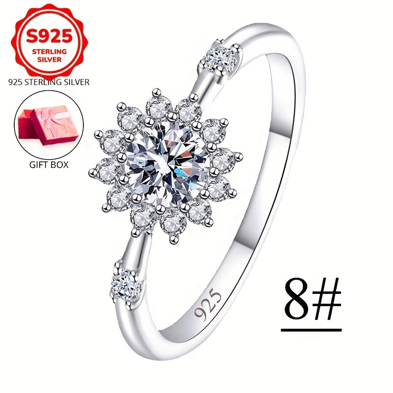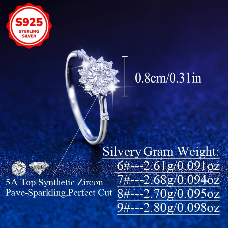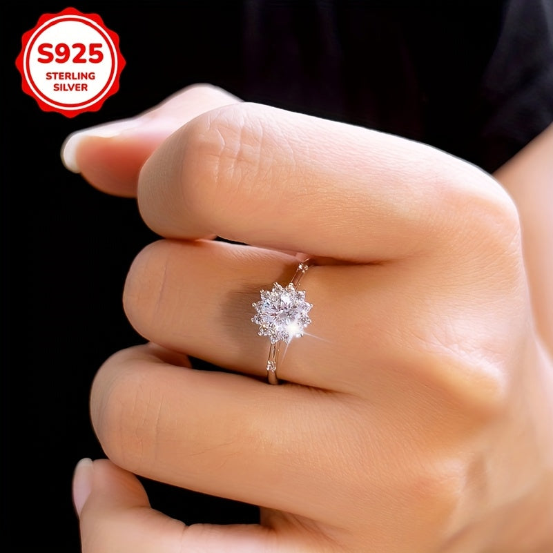 This elegant 925 silver wedding ring features a synthetic zirconia snowflake design. It is perfect for engagements, promises, and everyday wear.
