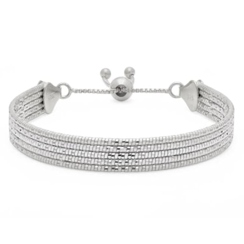Stunning 925 sterling silver bracelet with wraparound design. Features rhodium plating for lasting shine. Hallmarked for authenticity.