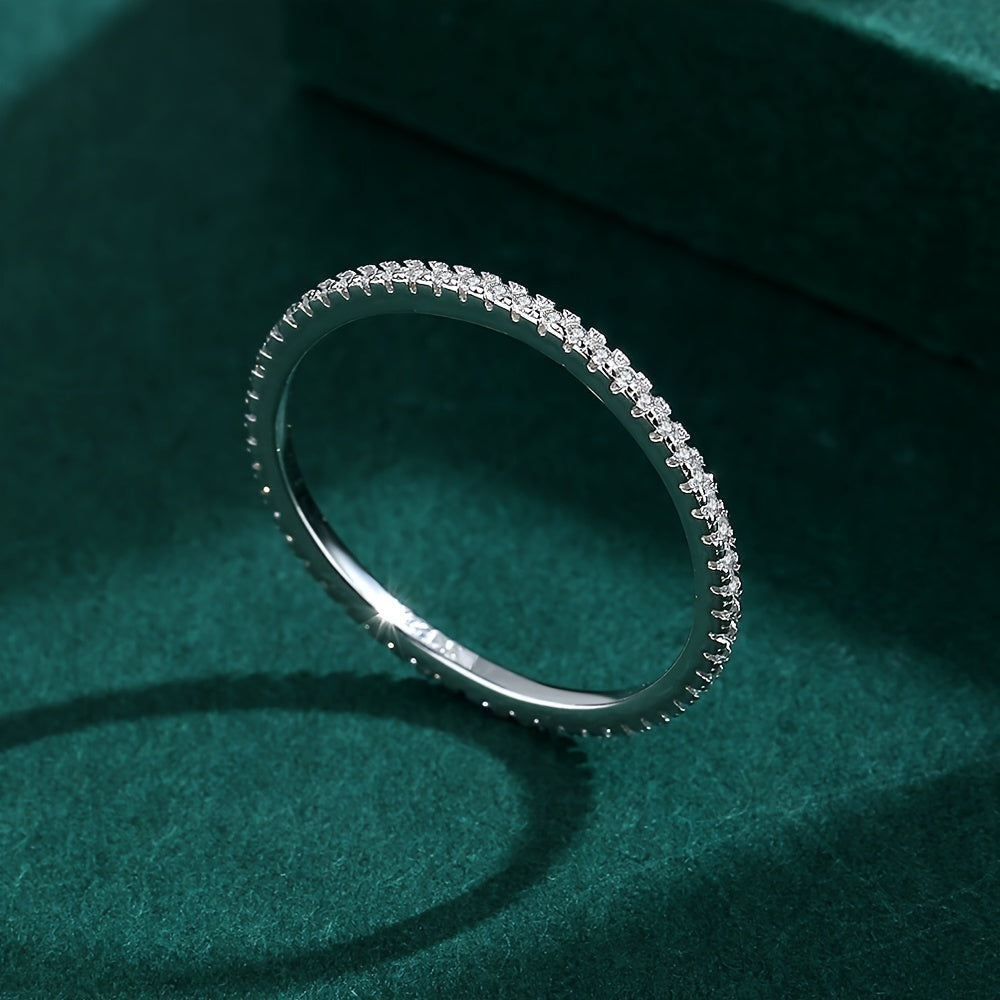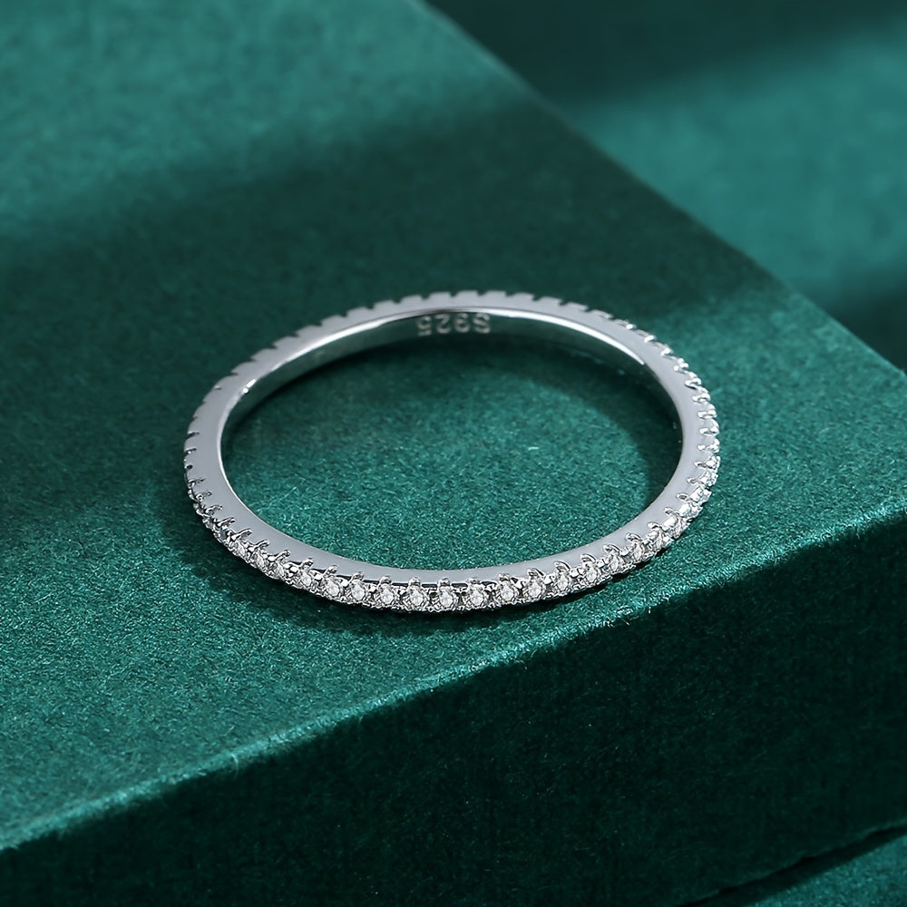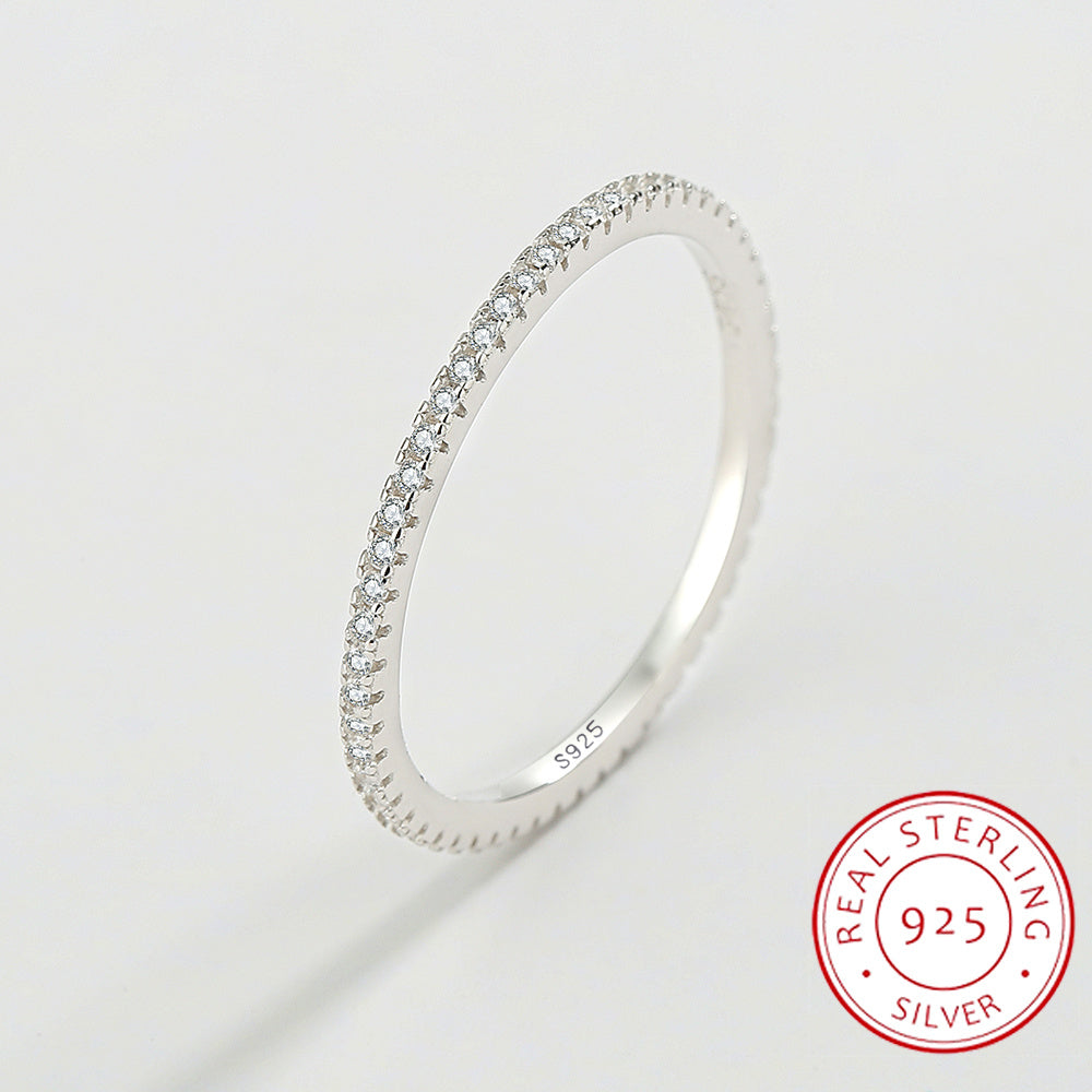 This stunning 925 sterling silver band ring features zircon stones and is perfect for weddings, eternity bands, or everyday wear. It makes a great gift for women and girls.