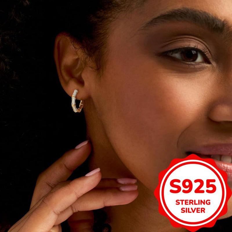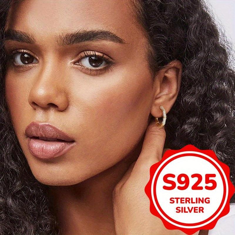 Add a touch of elegance to your style with these sterling silver hoop earrings featuring synthetic zirconia inlays. Ideal for daily wear and casual occasions, these huggie earrings make a great gift for any woman.