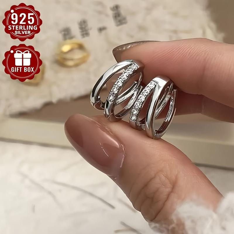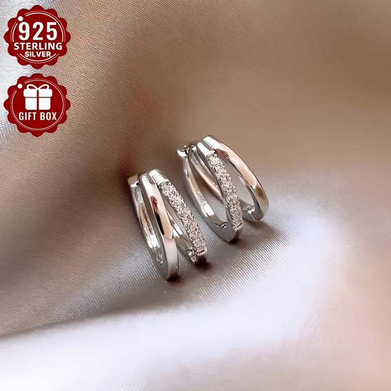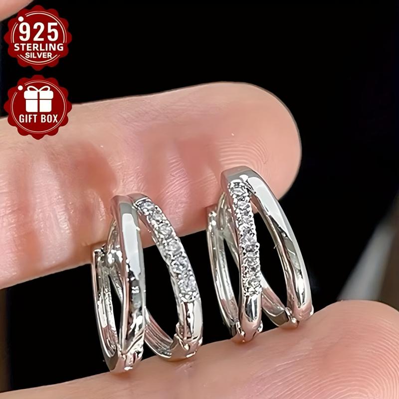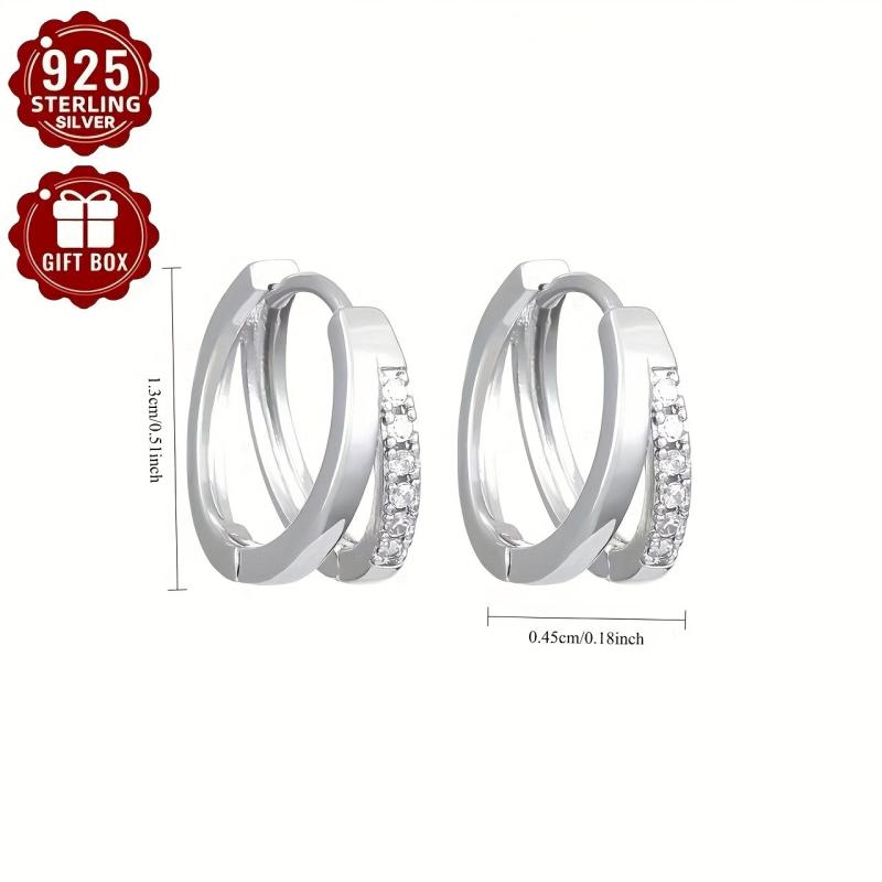 Elevate your style with these double-layer hollow hoop earrings featuring dazzling zirconia. Perfect for casual or special occasions, these versatile earrings make a great Valentine's gift.