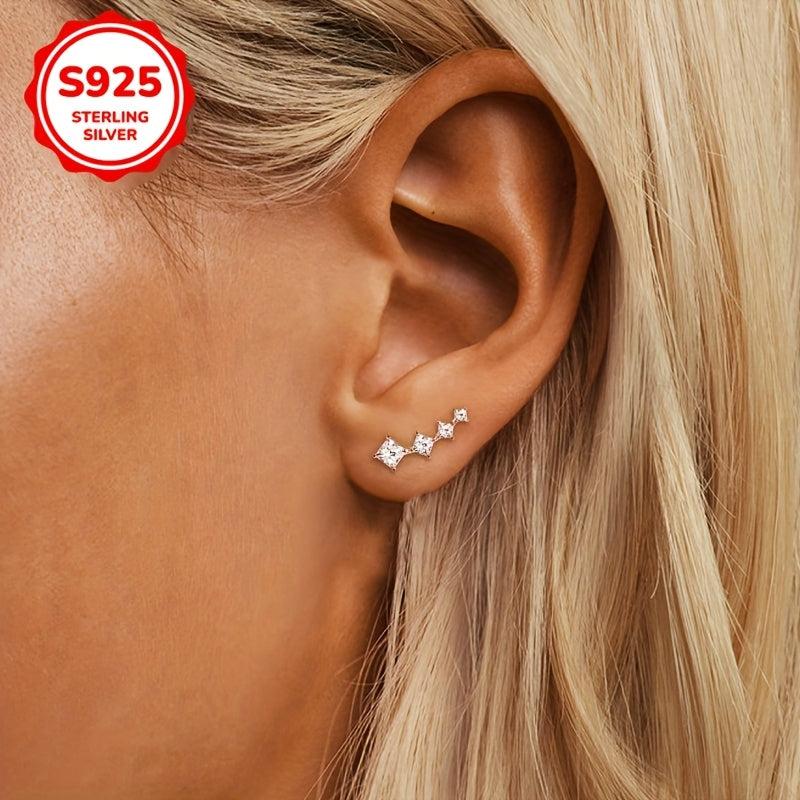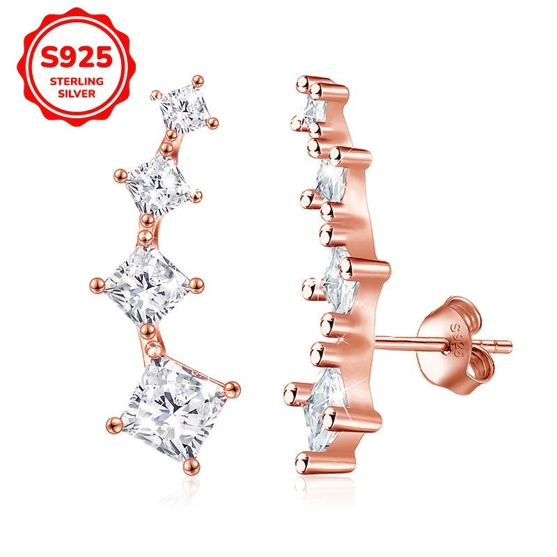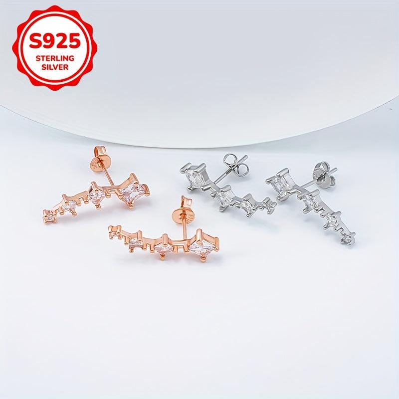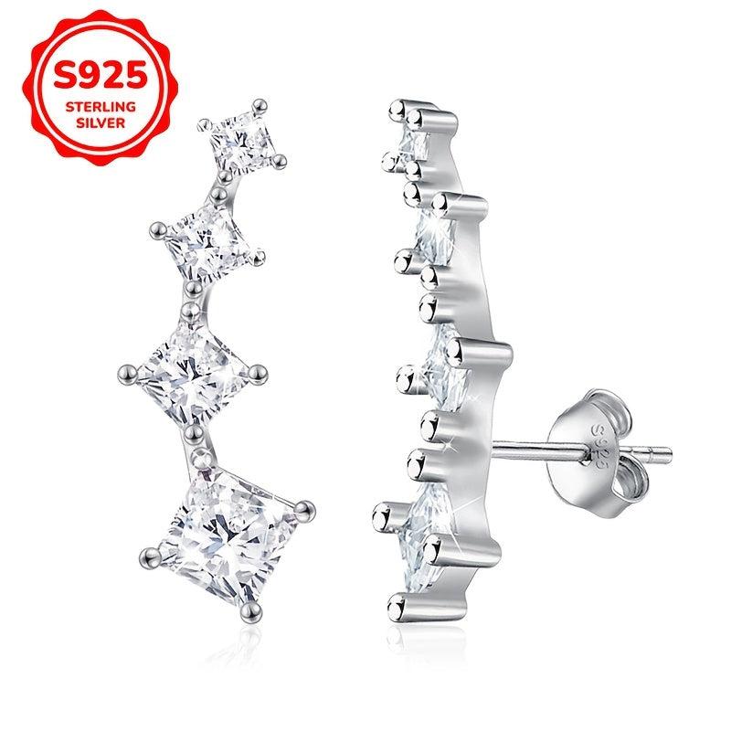 These stunning stud earrings are perfect for parties and special occasions. Made from 925 sterling silver with synthetic cubic zirconia stones in an elegant arc shape.