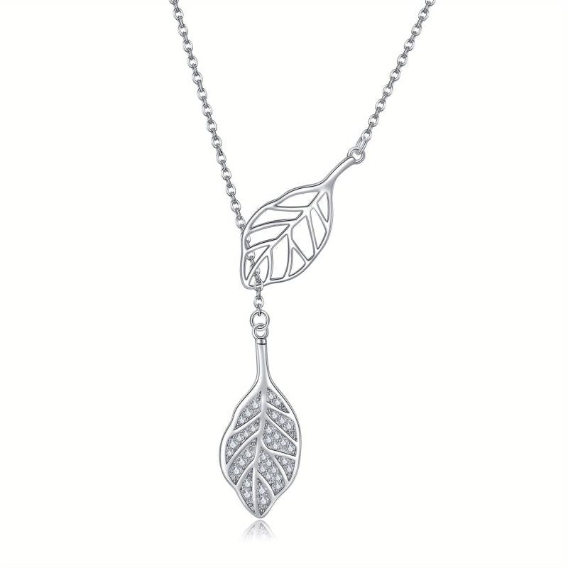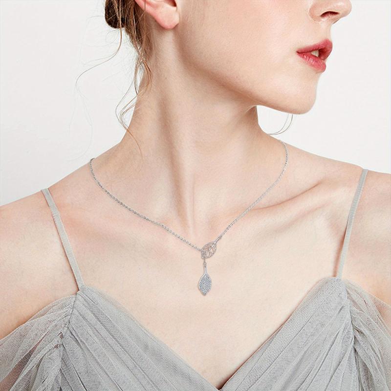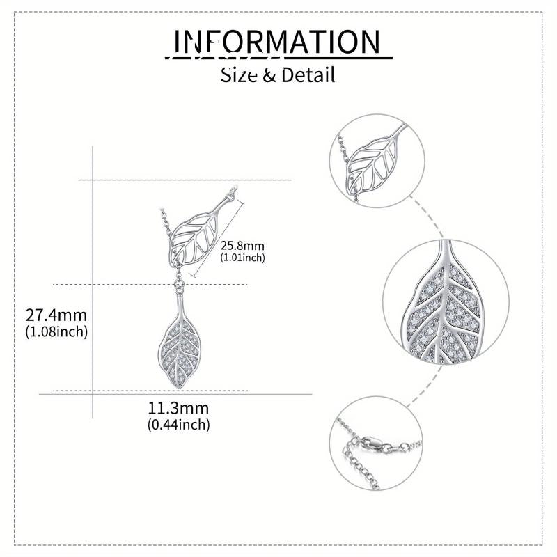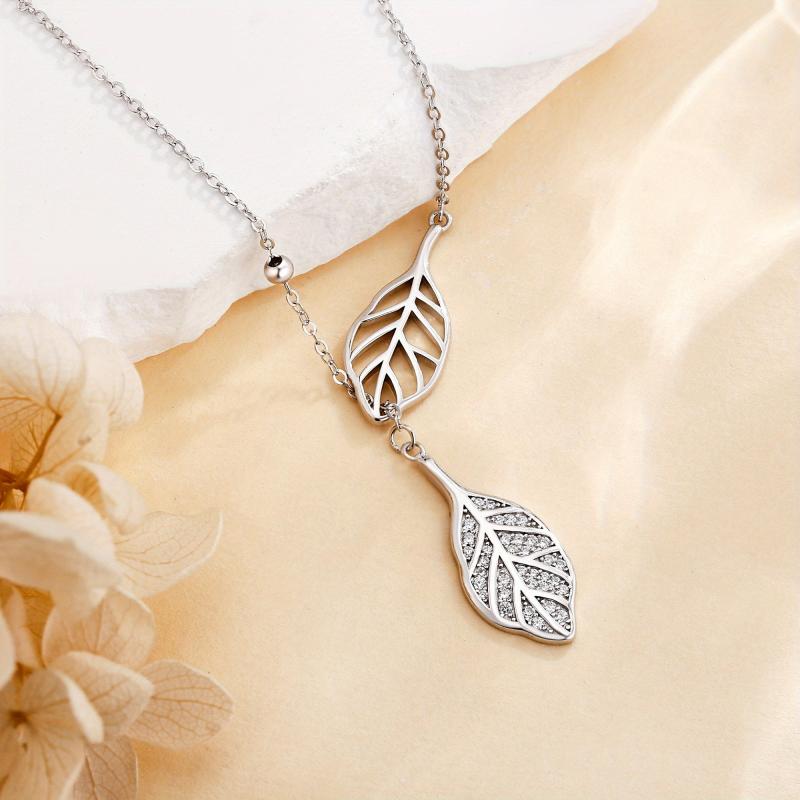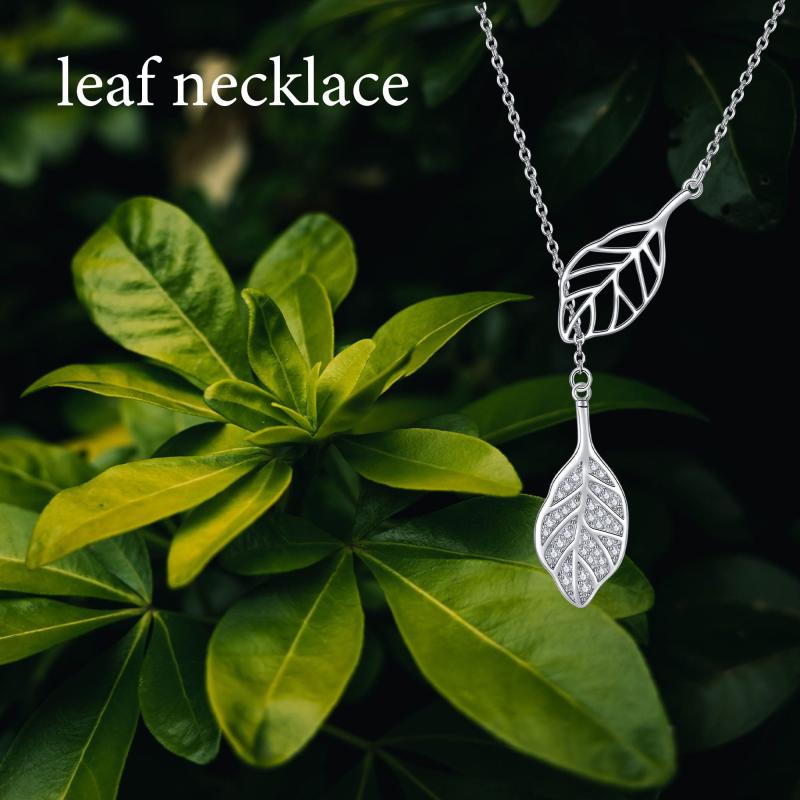 This elegant leaf necklace features a Y-shaped design with a 925 pure silver finish. It is adjustable in length, making it a versatile accessory for any outfit or occasion. A perfect gift idea for women.