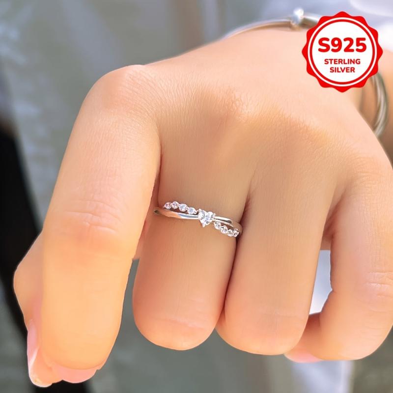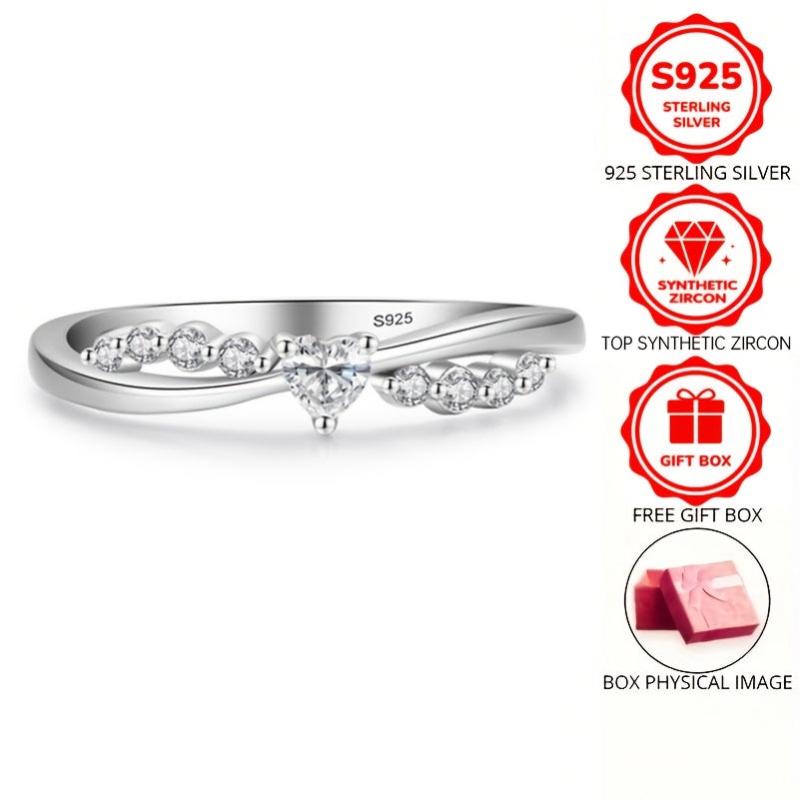 This stunning wedding ring features dazzling synthetic zirconia inlays, perfect for a romantic engagement or promise ring for brides. Made of 925 pure silvery material, it is low-allergy and ideal for sensitive skin.
