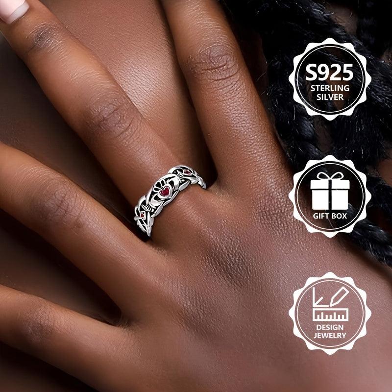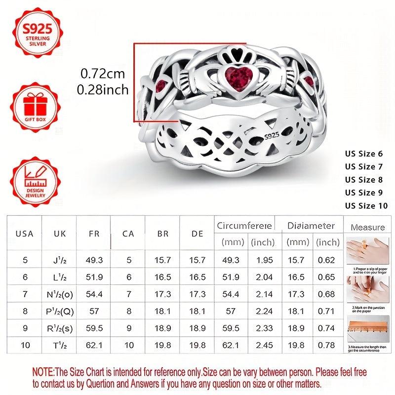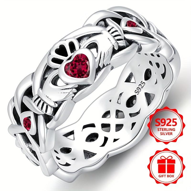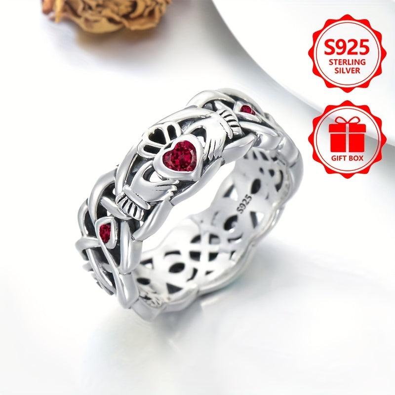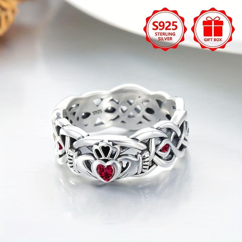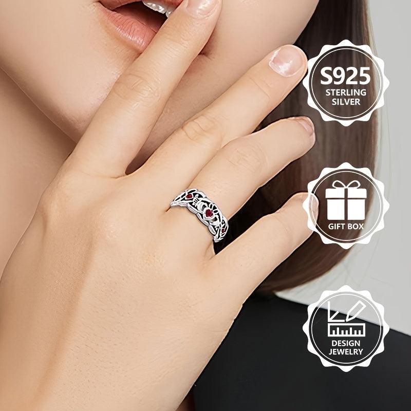 This 925 pure silvery ring has a retro, casual and atmospheric design with a hollow appearance and is inlaid with a rose red synthetic cubic zirconia. Perfect for parties and events.