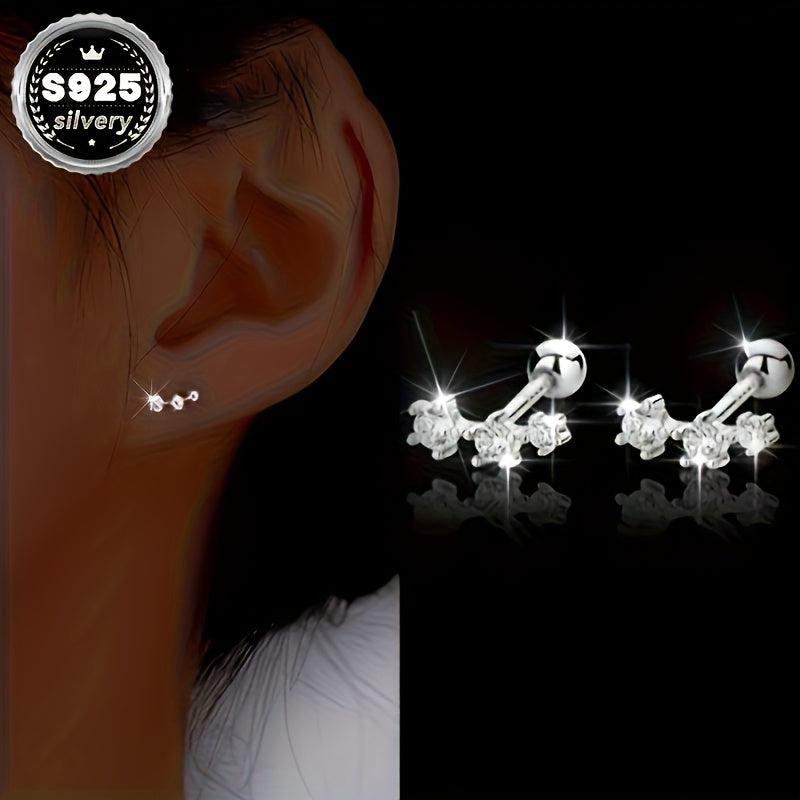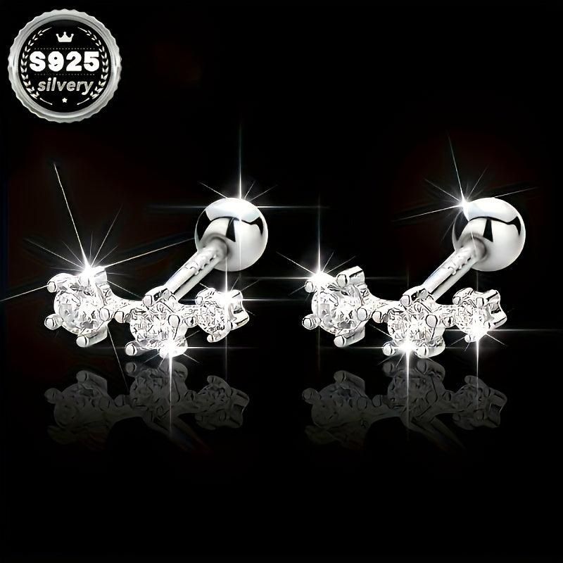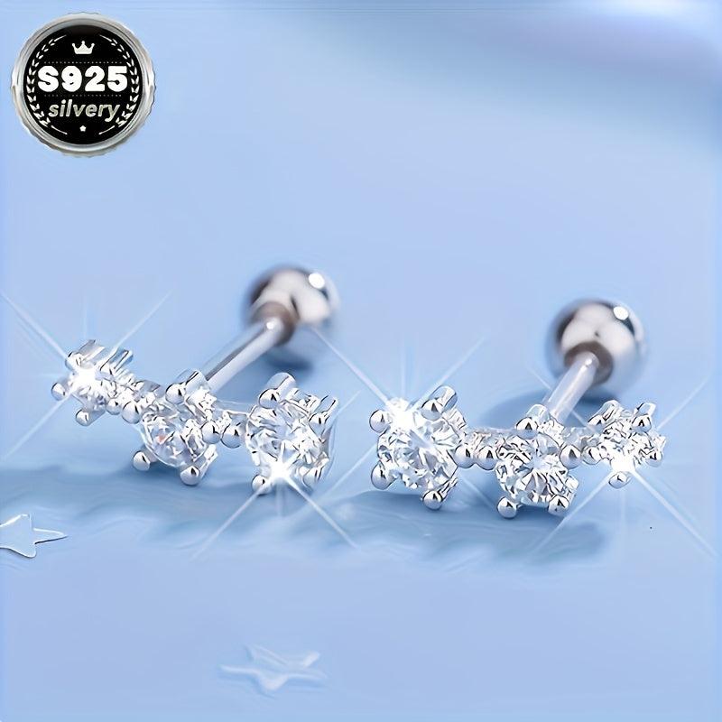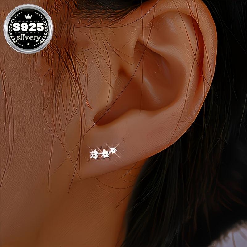Add a touch of sparkle to your look with these classic star stud earrings. Made with hypoallergenic 925 sterling silver and three rows of CZ zirconia, these earrings are perfect for everyday wear or special occasions.