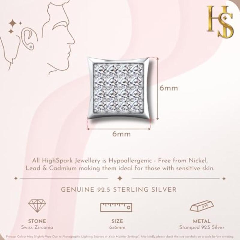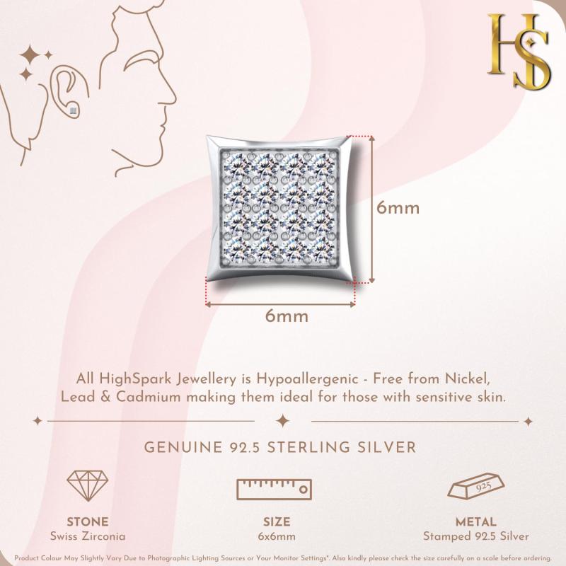 Add a touch of elegance to your look with this stylish square solitaire earring made of 92.5 sterling silver and brilliant zirconia.