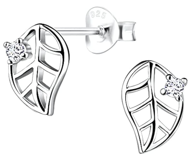 Add a touch of elegance to your look with these sterling silver stud earrings featuring crystal leaf design.