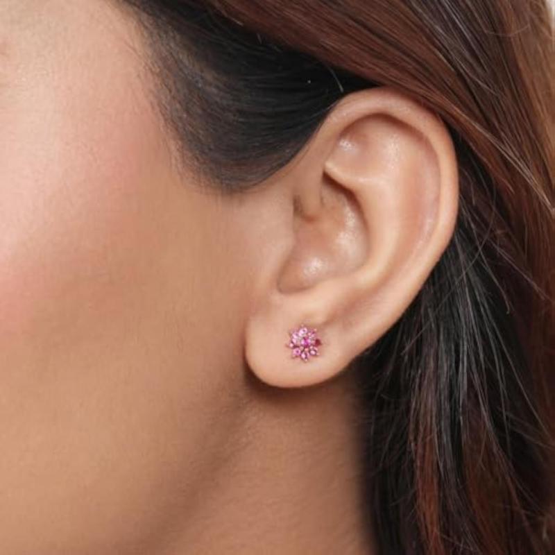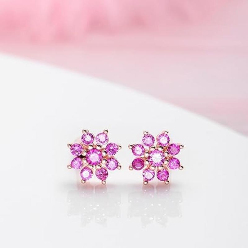 These stunning stud earrings feature a dark pink floral rose design plated with 925 sterling silver. Each earring is hallmarked for authenticity.