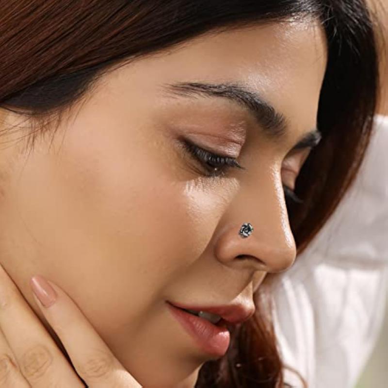 Enhance your look with this stylish 925 sterling silver floral nath nose pin rhodium plated ring. Perfect for special occasions or everyday wear.