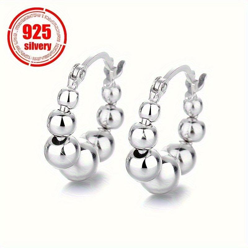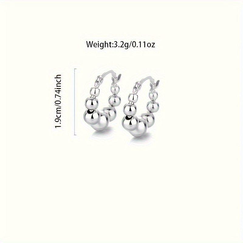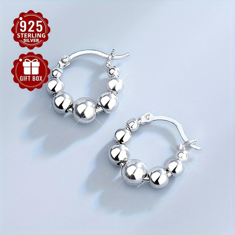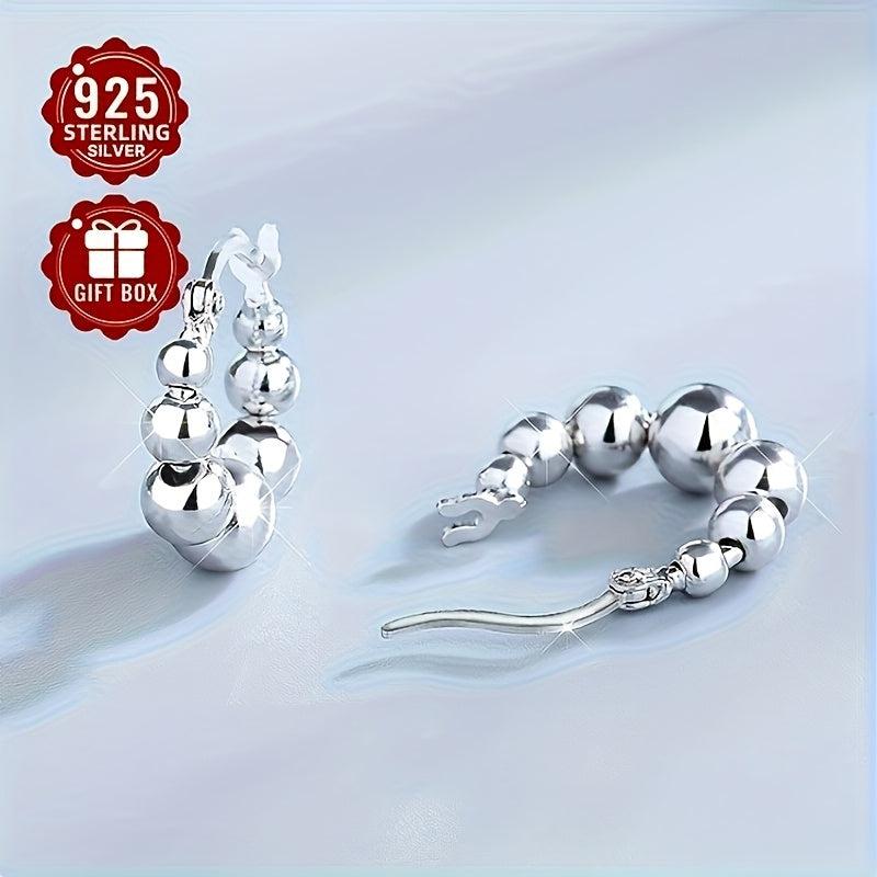 These classic round bead hoop earrings are perfect for casual attire and parties. Made of 925 sterling silver, these earrings are ideal for commuting.