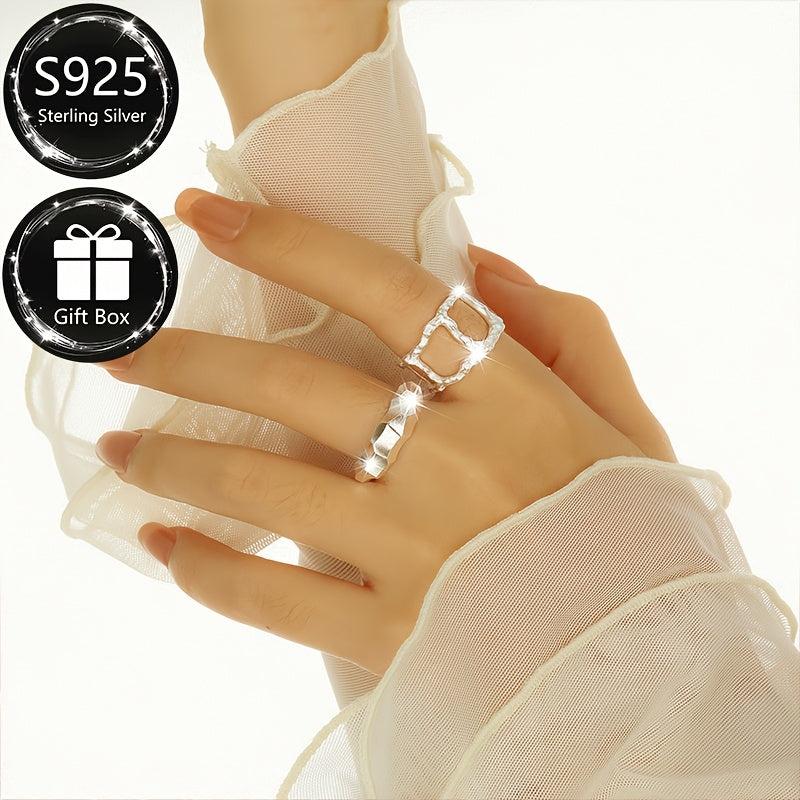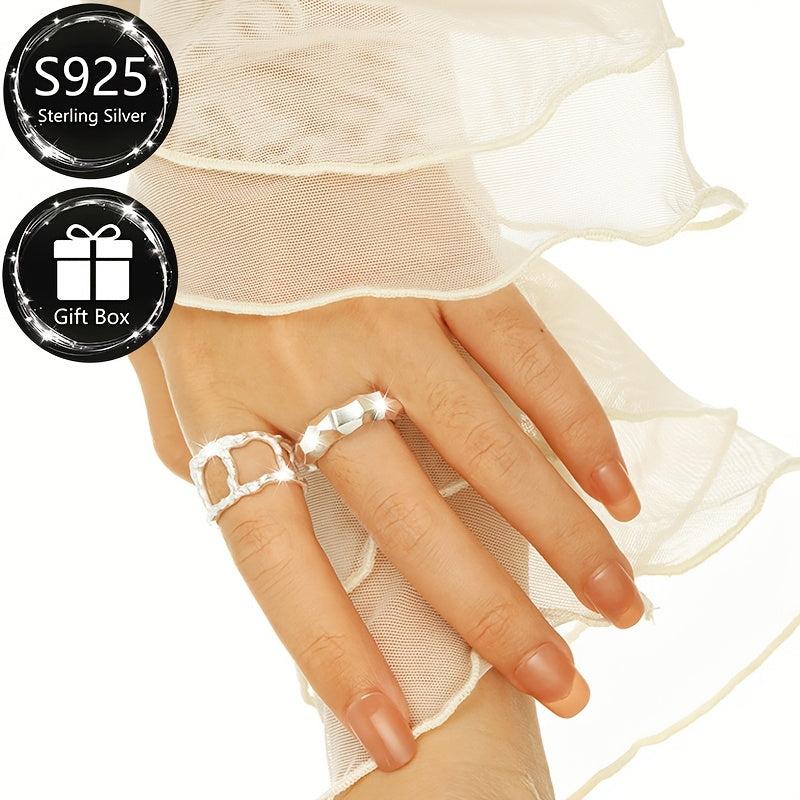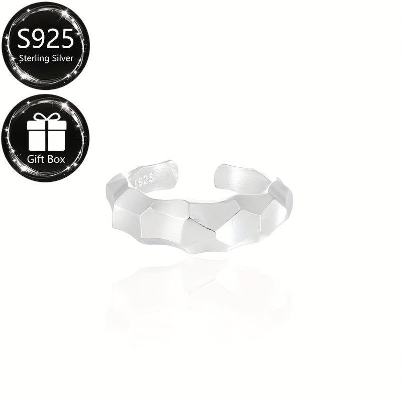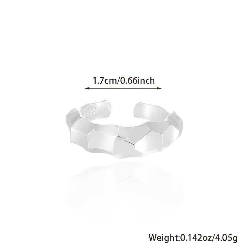 This 925 sterling silver bangle ring is perfect for both men and women. It is adjustable, making it suitable for daily wear and parties. Weighing about 4.05 grams, this ring features a matte geometric style.